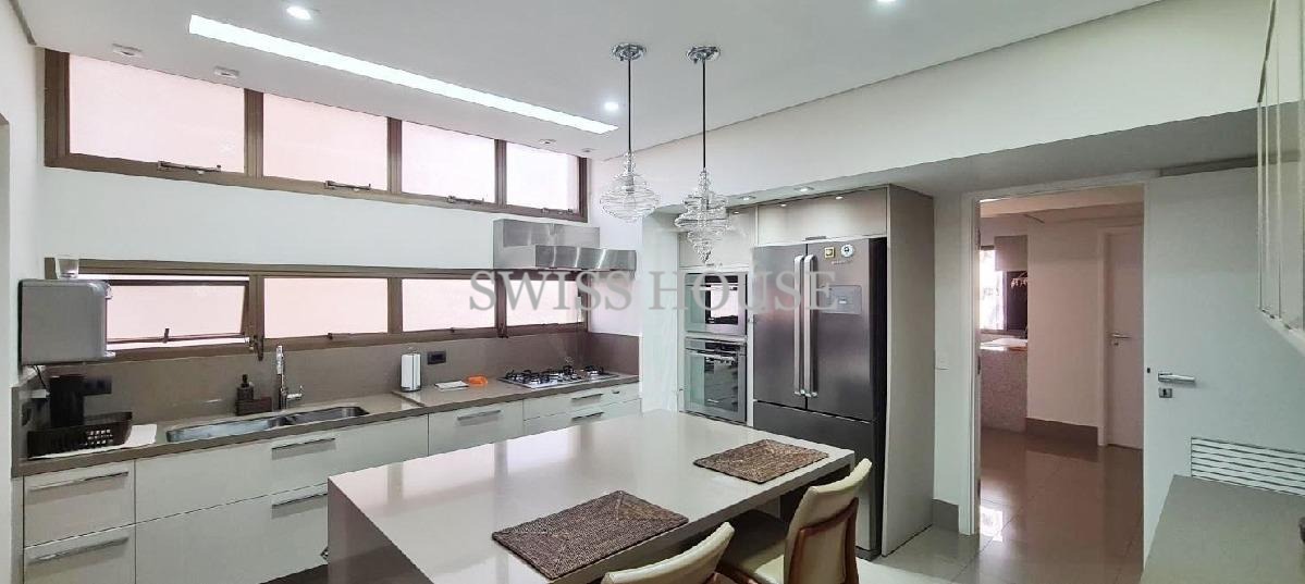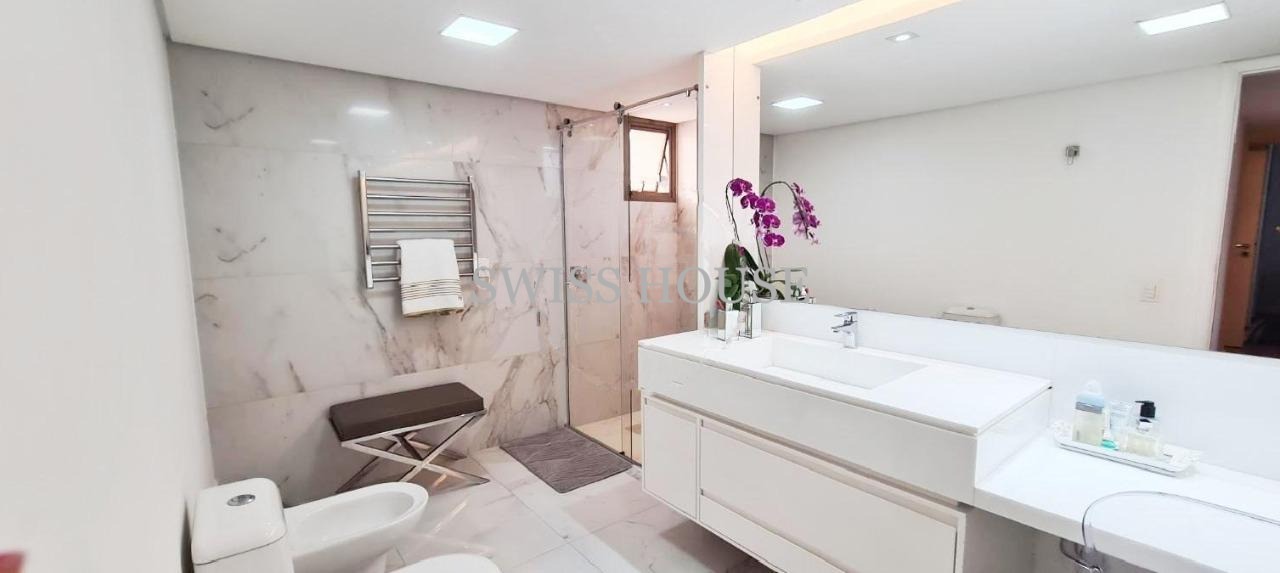 04 suítes espaçosas, sendo a master com closet, living pra até 04 ambiente, ampla varanda com copa externa, sala de jantar, espaço de vinhos, escritório, cozinha com armarios embutidos, cooktop, home theater, dependência completa de serviço com entrada independente, depensa, lavabo, aquecedor solar, lavanderia, 04 vagas cobertas