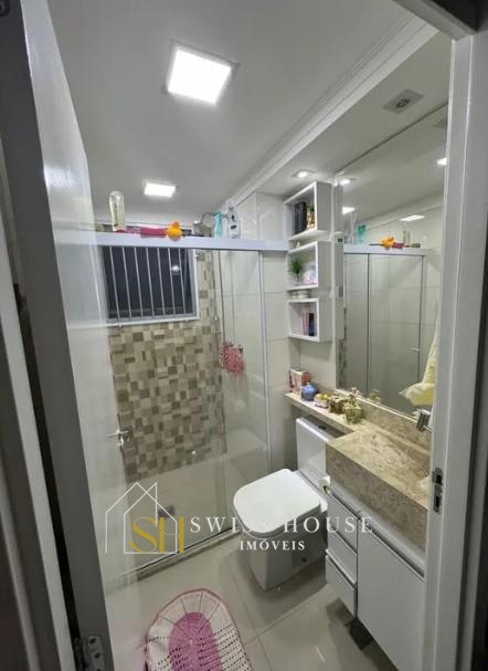 Condomínio com Face ID na portaria e no hall de entrada, campo de futebol, salão de festas, 2 churrasqueiras, academia, parquinho e mercado.