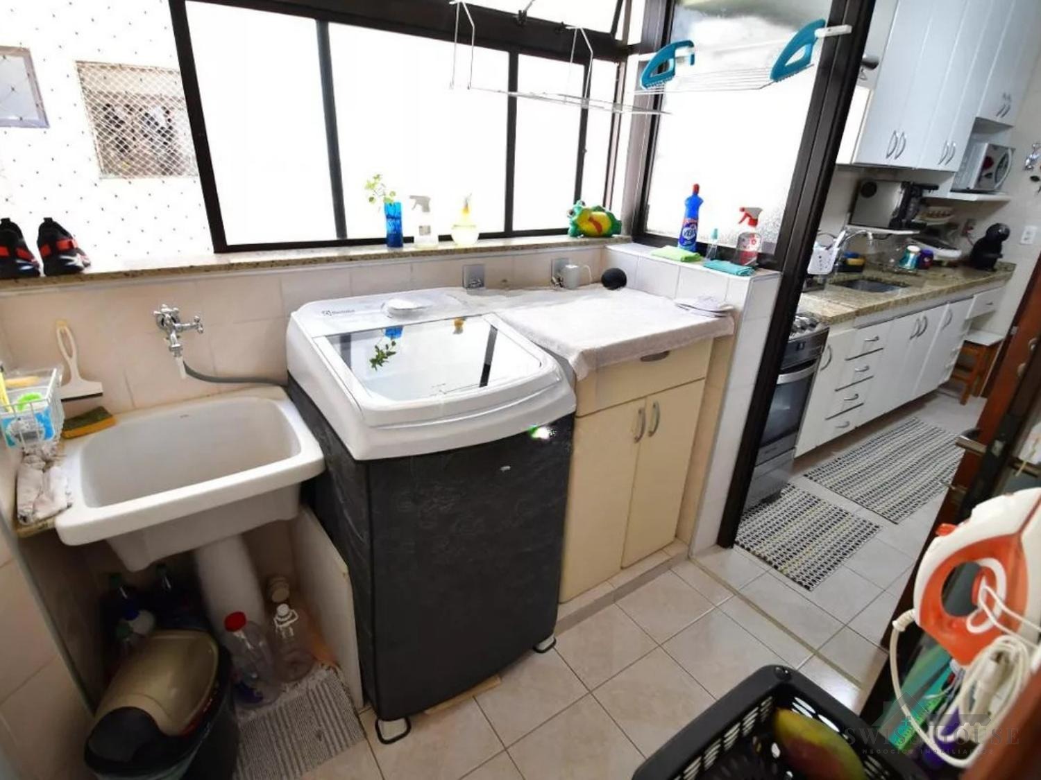 A sala para dois ambientes é ampla e integrada à sacada com vista livre, ideal para momentos de descanso e lazer. A cozinha é planejada, com armários de qualidade e excelente aproveitamento de espaço, conectada à área de serviço com banheiro de apoio, proporcionando praticidade ao dia a dia.