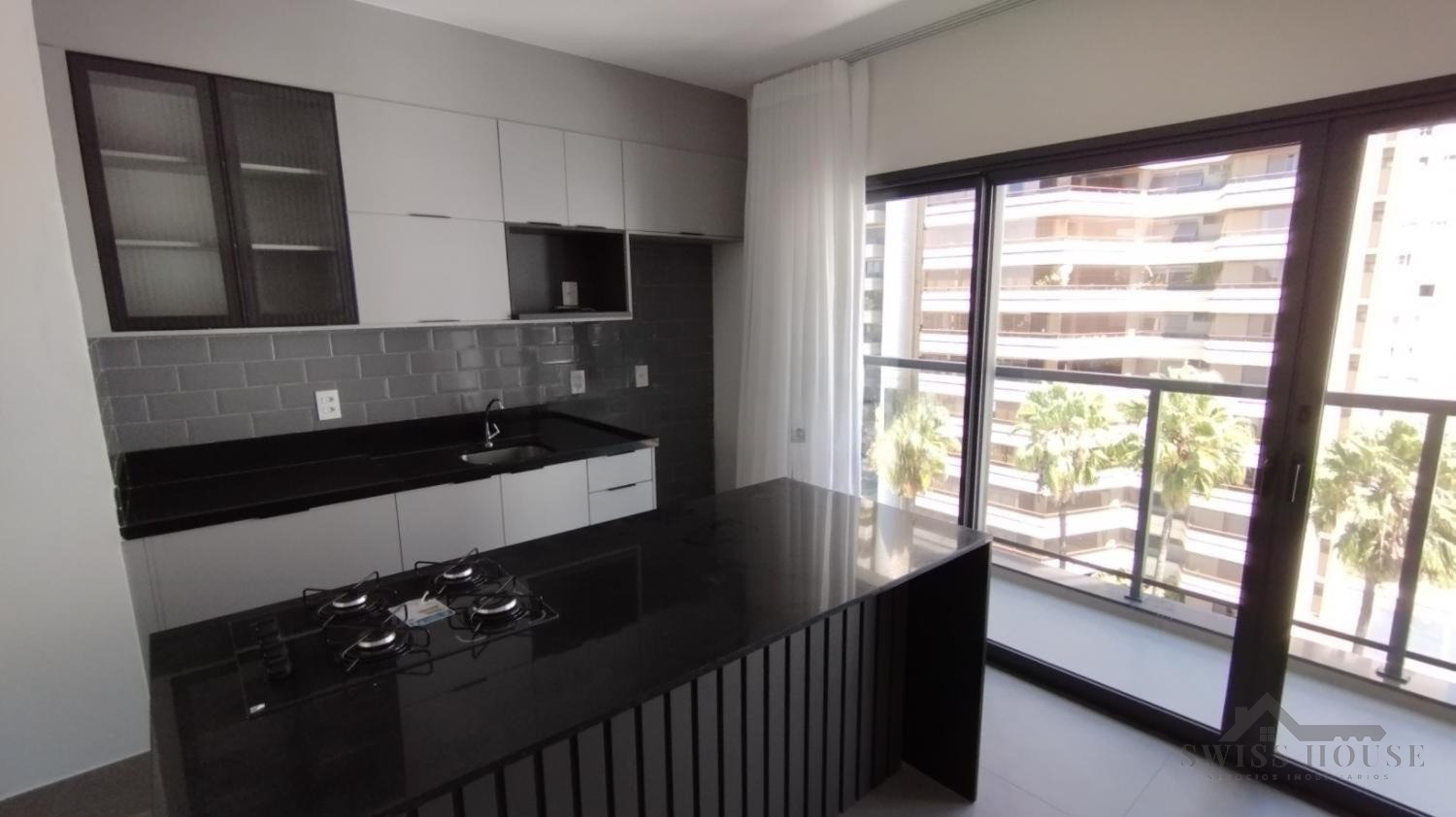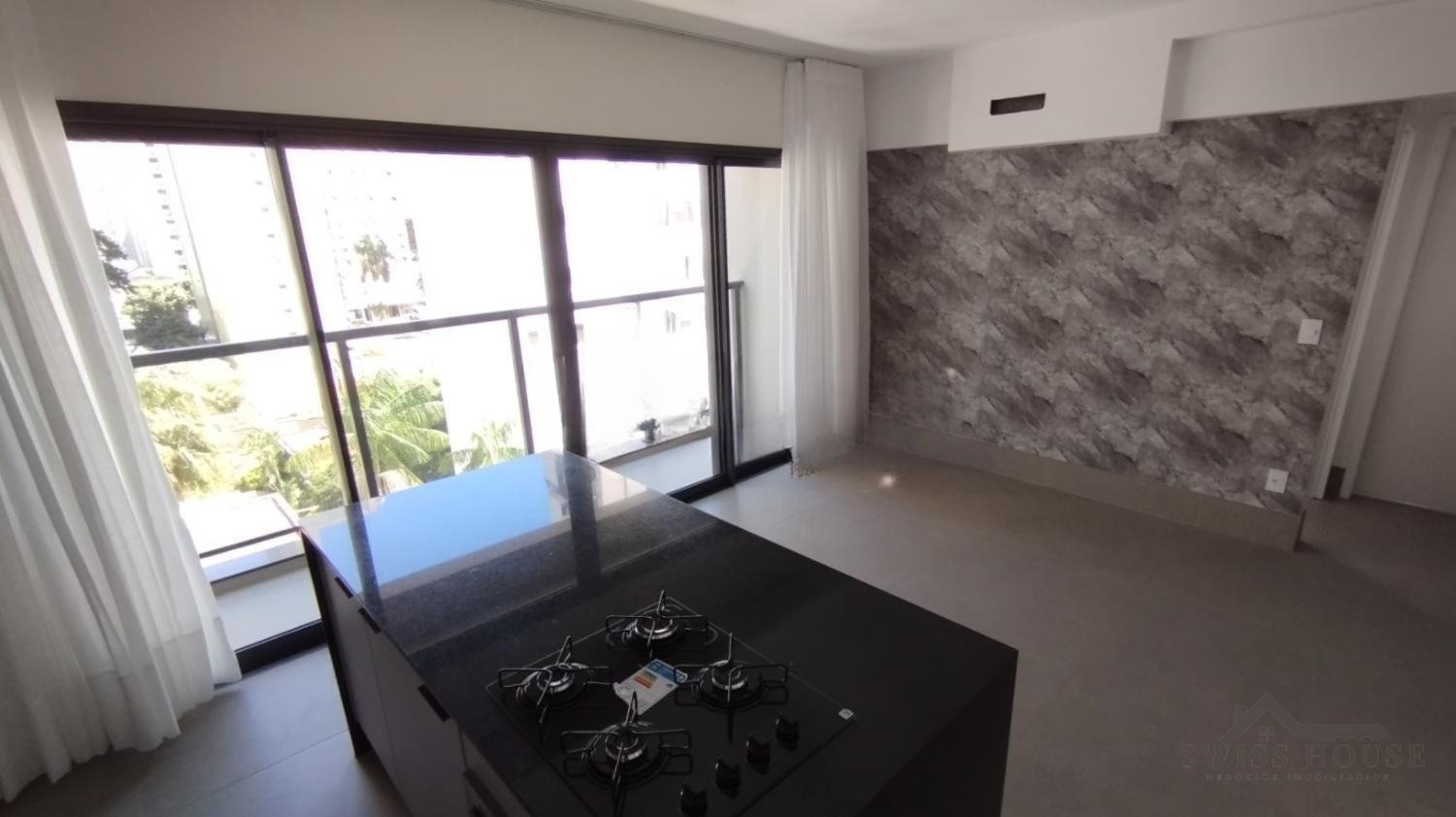 O imóvel conta ainda com banheiro com armário e cozinha planejada, equipada com ilha e cooktop, trazendo modernidade e praticidade para o dia a dia.