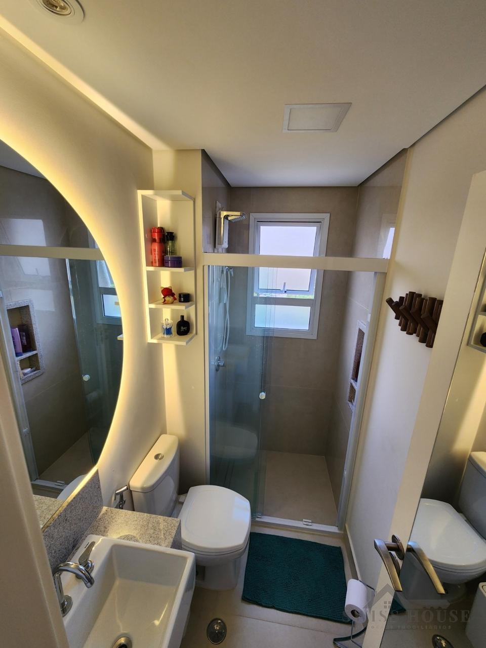 Conta ainda com 2 banheiros, área de serviço e é rico em armários, oferecendo praticidade e organização em todos os ambientes.