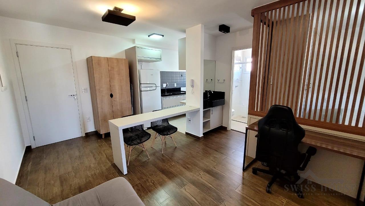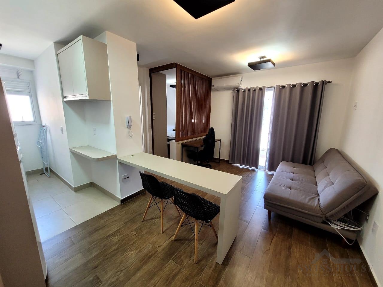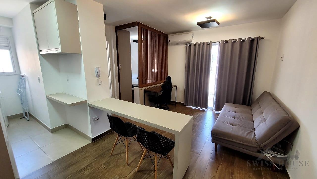 Apartamento aconchegante, com 1 dormitório, sala de TV e sala de jantar, além de cozinha planejada funcional. Conta com banheiro, sacada e 1 vaga de garagem coberta.