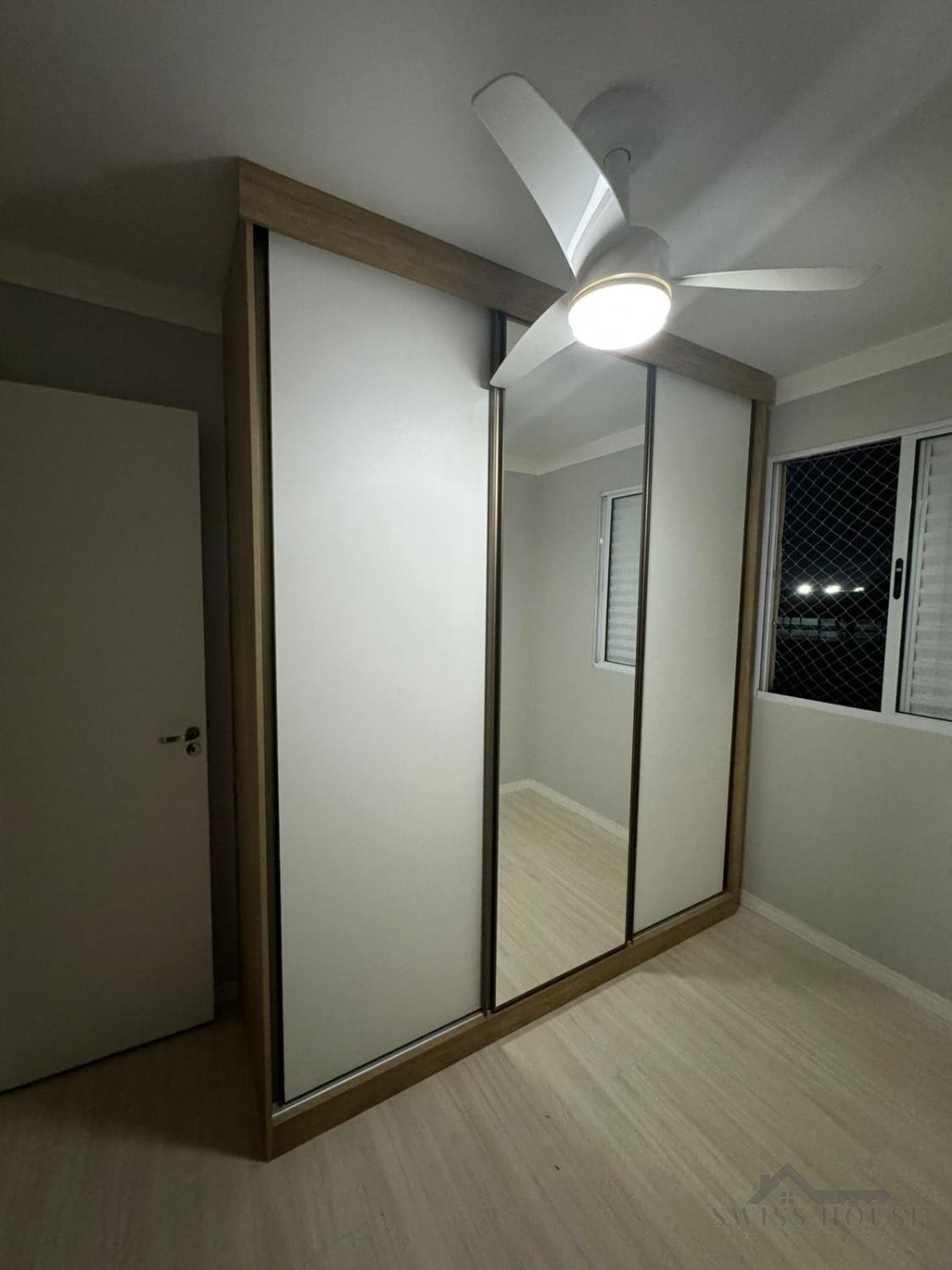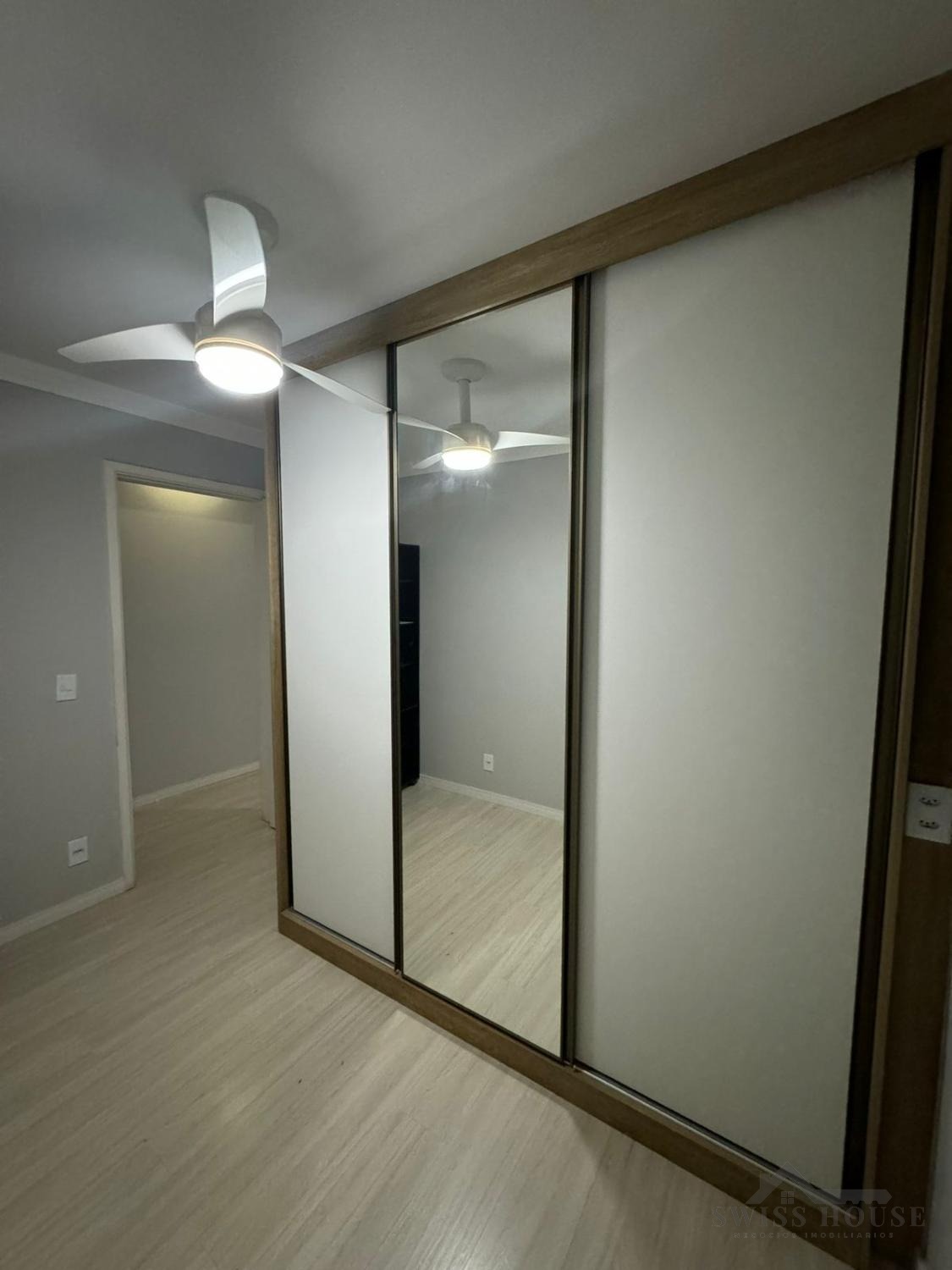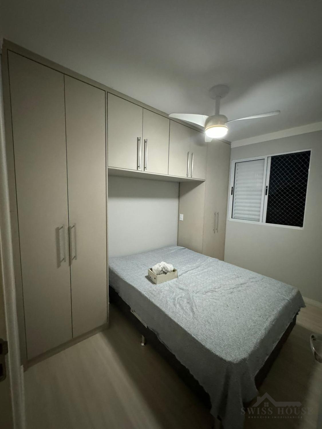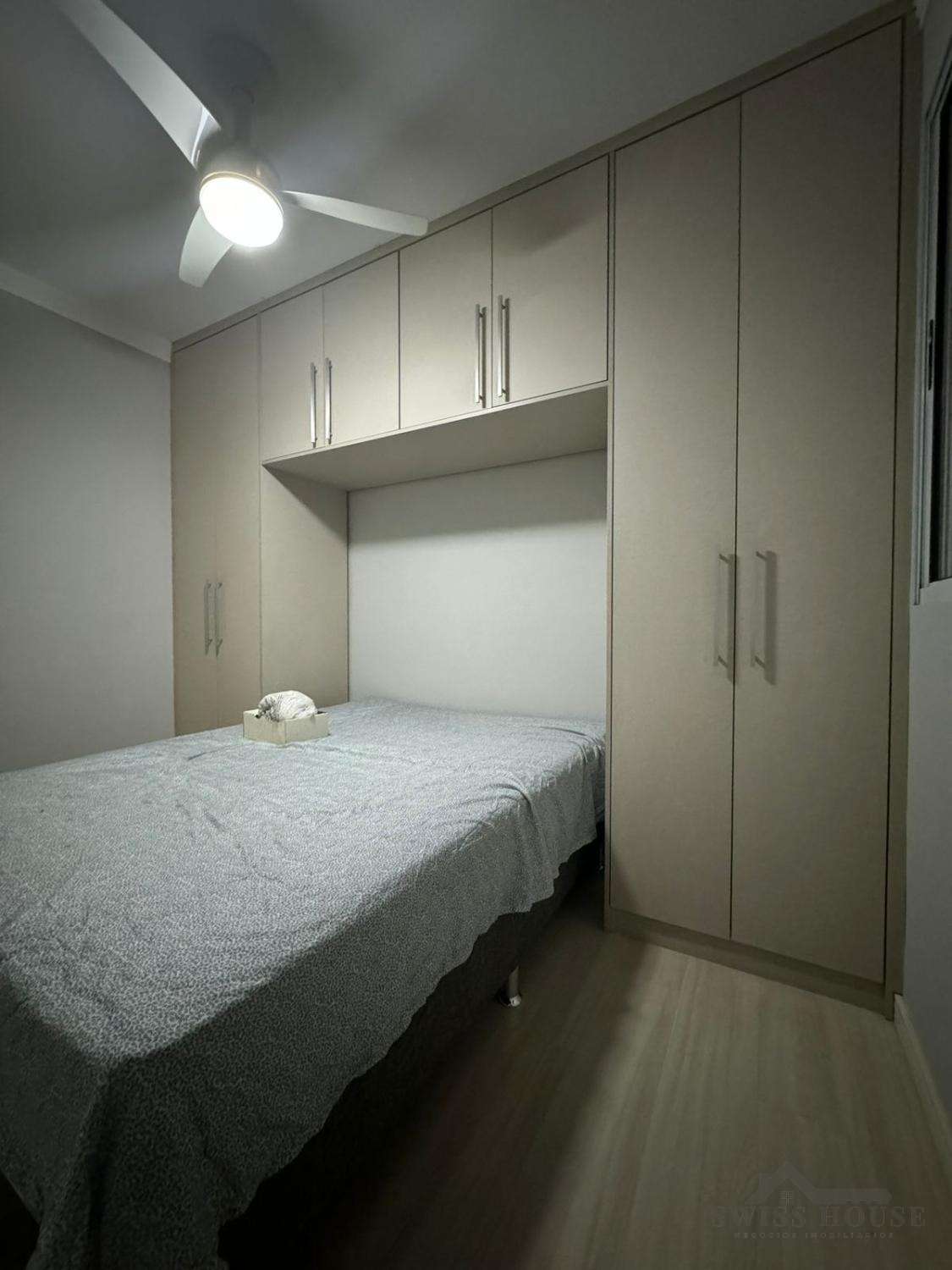 O apartamento conta com 2 quartos, ambos com armários planejados, ventiladores de teto e piso laminado. A sala para 2 ambientes é ampla, arejada e bem iluminada, perfeita para momentos de convivência.