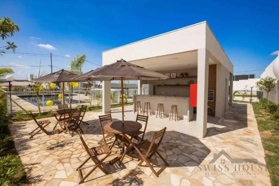 Condomínio com portaria 24 horas, piscina e salão de festas.