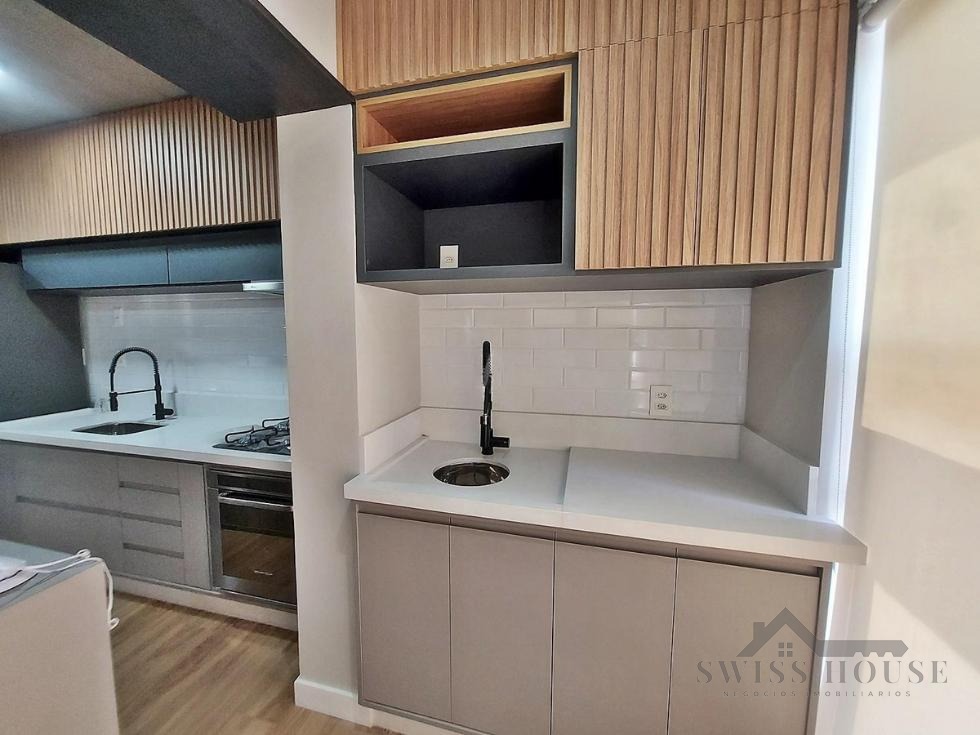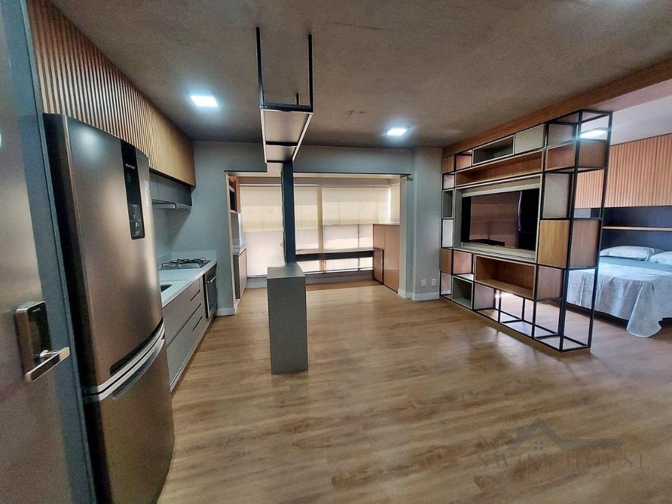 Apartamento com acabamento de primeira linha, com 51 m² de área privativa. Possui 1 dormitório sendo suíte, ar-condicionado, banheiro com box em vidro, ampla sala para dois ambientes com TV instalada e varanda. A cozinha é planejada e equipada com coifa, cooktop, forno e geladeira. Conta ainda com 1 vaga de garagem no subsolo. Um imóvel moderno, funcional e pronto para morar.