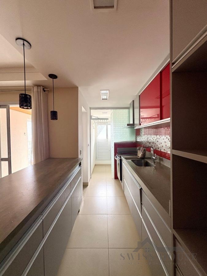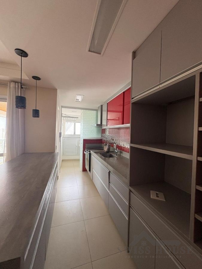 O apartamento possui ainda uma varanda gourmet, perfeita para receber amigos e aproveitar momentos de lazer, além de cozinha americana, que integra os ambientes com um toque contemporâneo e funcional. Conta também com área de serviço bem planejada.