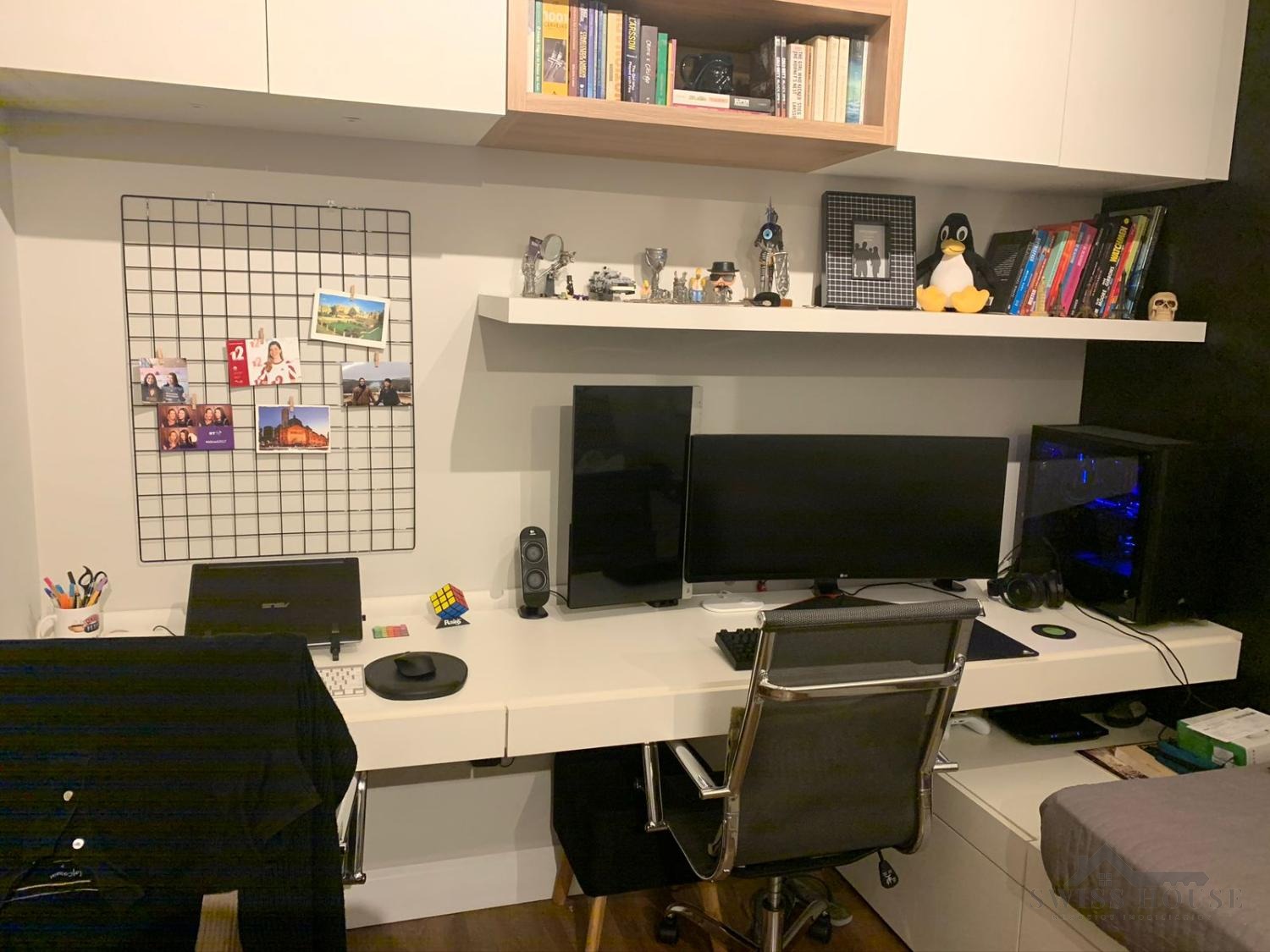 O imóvel conta com 2 quartos, sendo 1 suíte, e um dos dormitórios já está com móveis planejados para escritório, perfeito para home office. A planta é funcional, com ambientes integrados e ótima circulação.