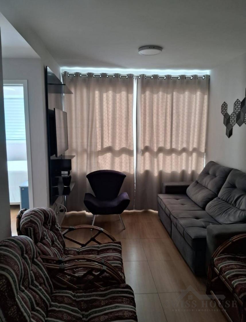 Conta com 2 dormitórios, sendo 1 suíte com ventilador de teto, sala de estar e jantar integradas, cozinha com cooktop e belíssimos armários planejados, além de área de serviço também planejada. O imóvel dispõe de guarda-roupa e sapateira, agregando ainda mais funcionalidade ao dia a dia.
