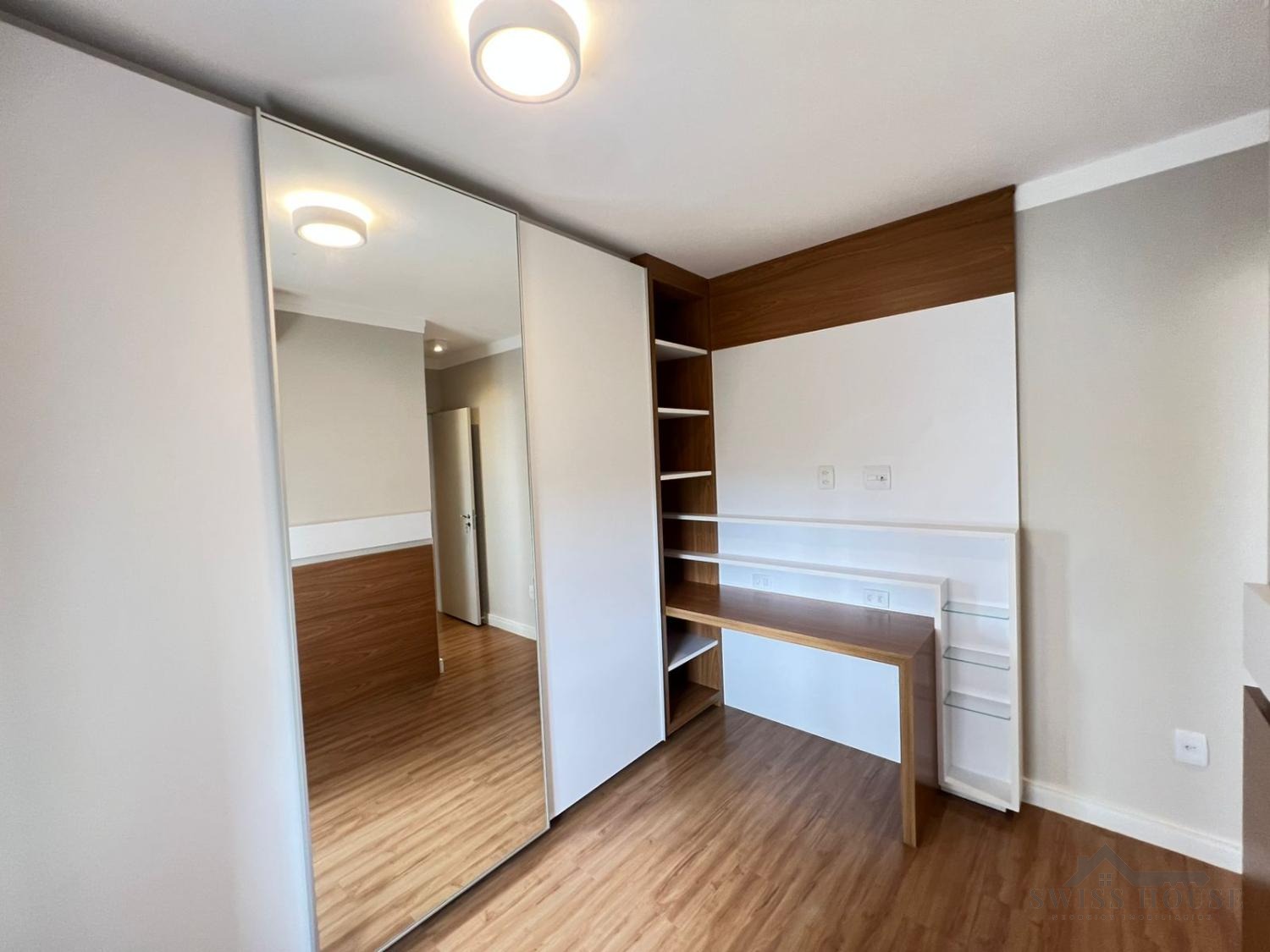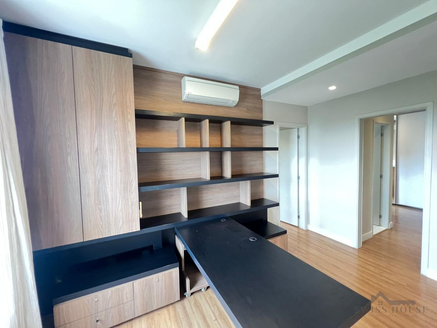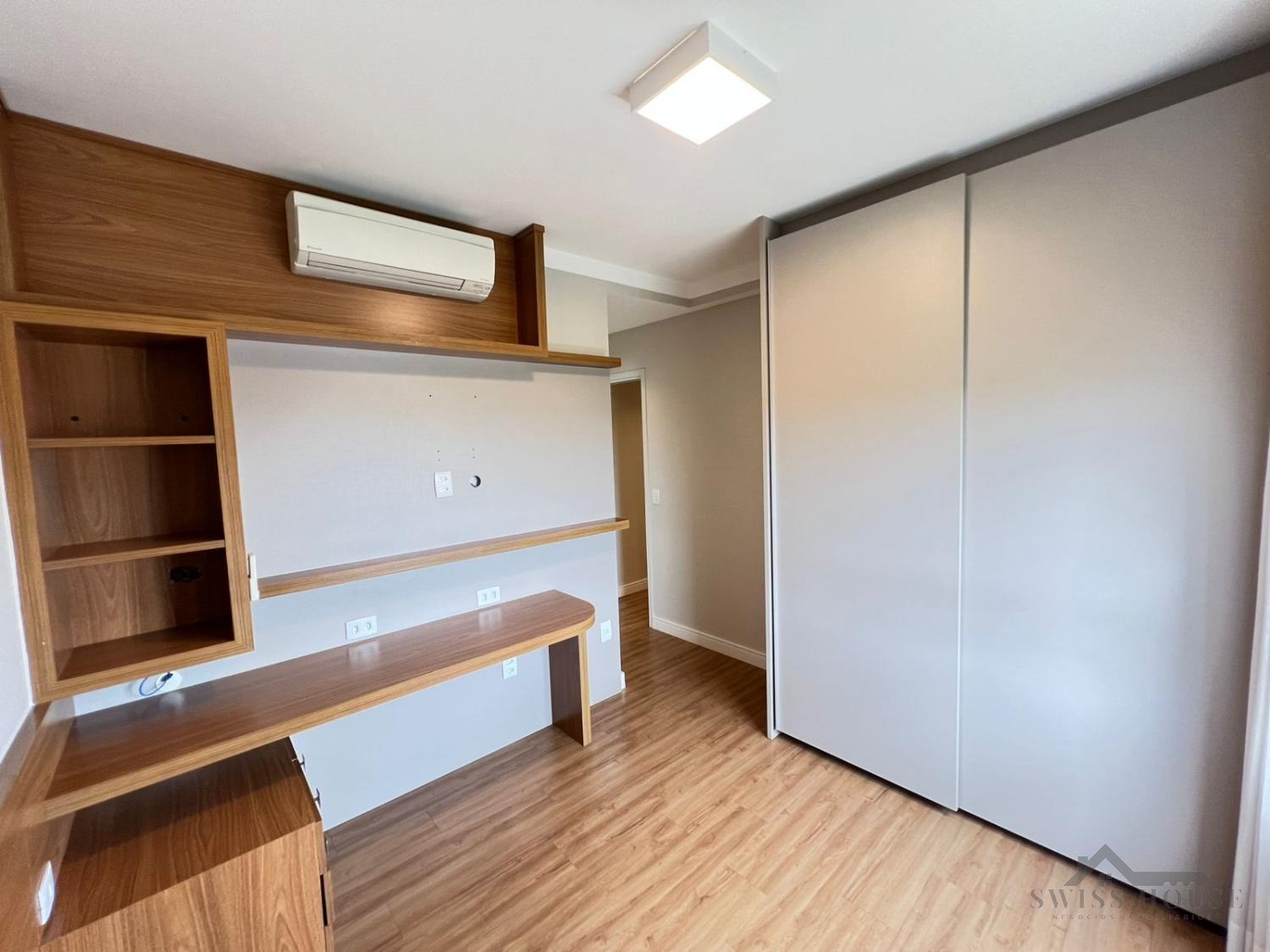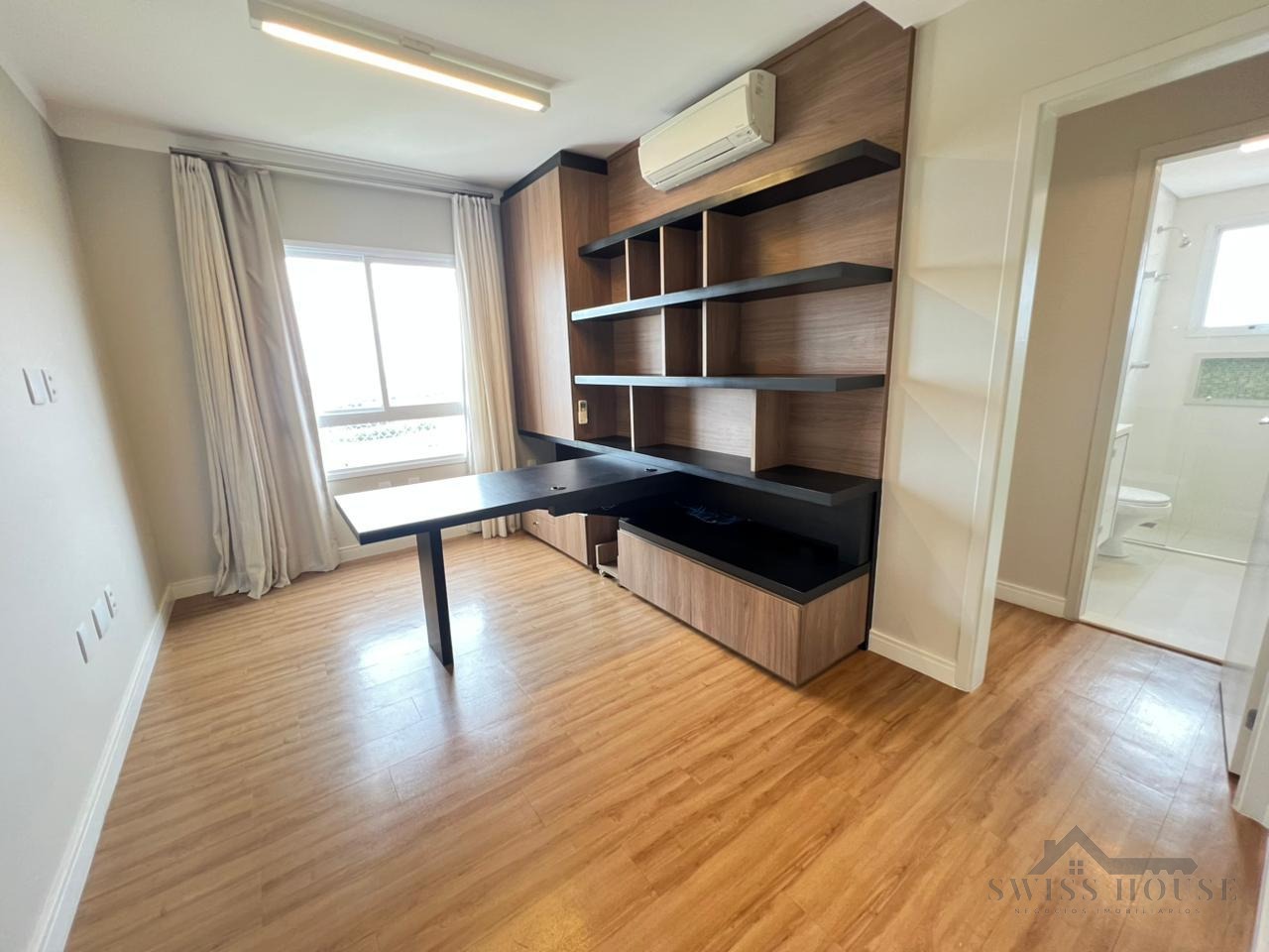 Conta com 3 suítes, todas com armários planejados e ar-condicionado, garantindo conforto e praticidade. Dispõe ainda de espaço para home office, ideal para quem trabalha em casa.