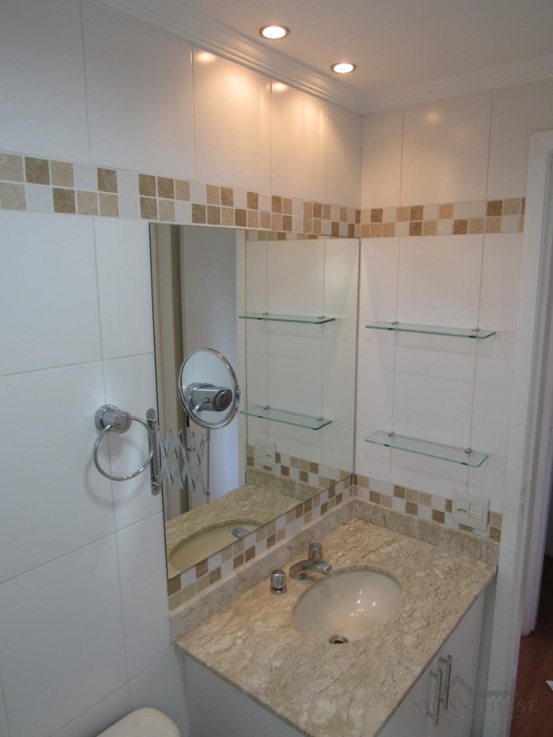 A cozinha é planejada e integrada à área de serviço, oferecendo praticidade no dia a dia. O apartamento possui 3 banheiros, sendo que um deles foi transformado em despensa, agregando mais funcionalidade ao espaço.