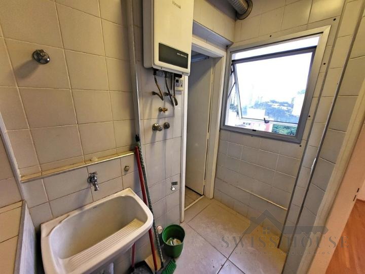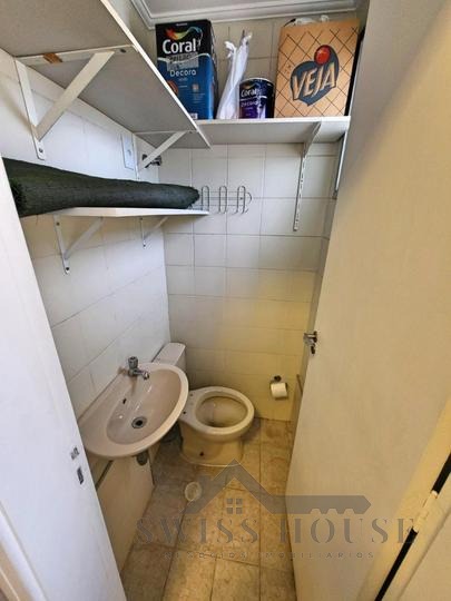 A cozinha é ampla e funcional, com área de serviço independente e banheiro de apoio, oferecendo mais praticidade no dia a dia.