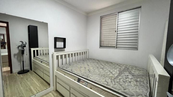 Nos dormitórios permanecem camas com colchões, beliche, guarda-roupas, criado-mudo, cabeceira da cama, colchão adicional e escrivaninha, garantindo praticidade para quem busca um imóvel pronto para morar.