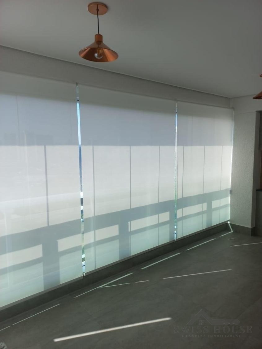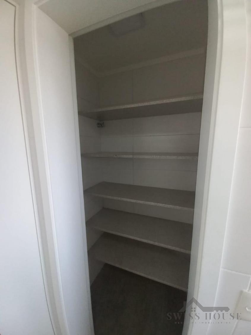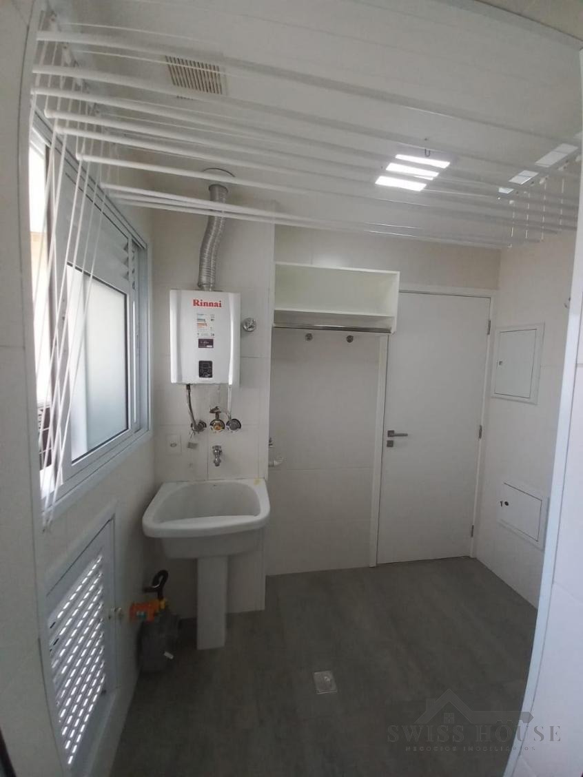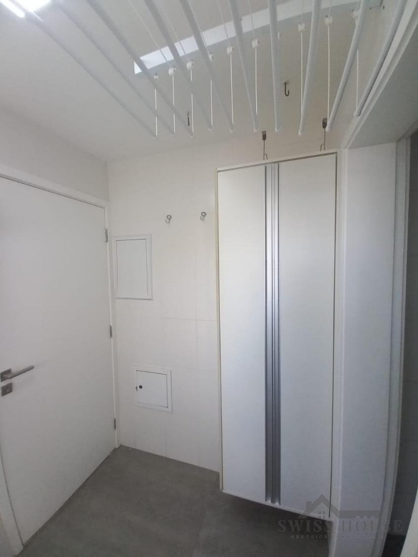 A cozinha é planejada, equipada com fogão e coifa, proporcionando funcionalidade no dia a dia. O imóvel possui ainda lavanderia fechada e banheiro de serviço, garantindo mais praticidade.