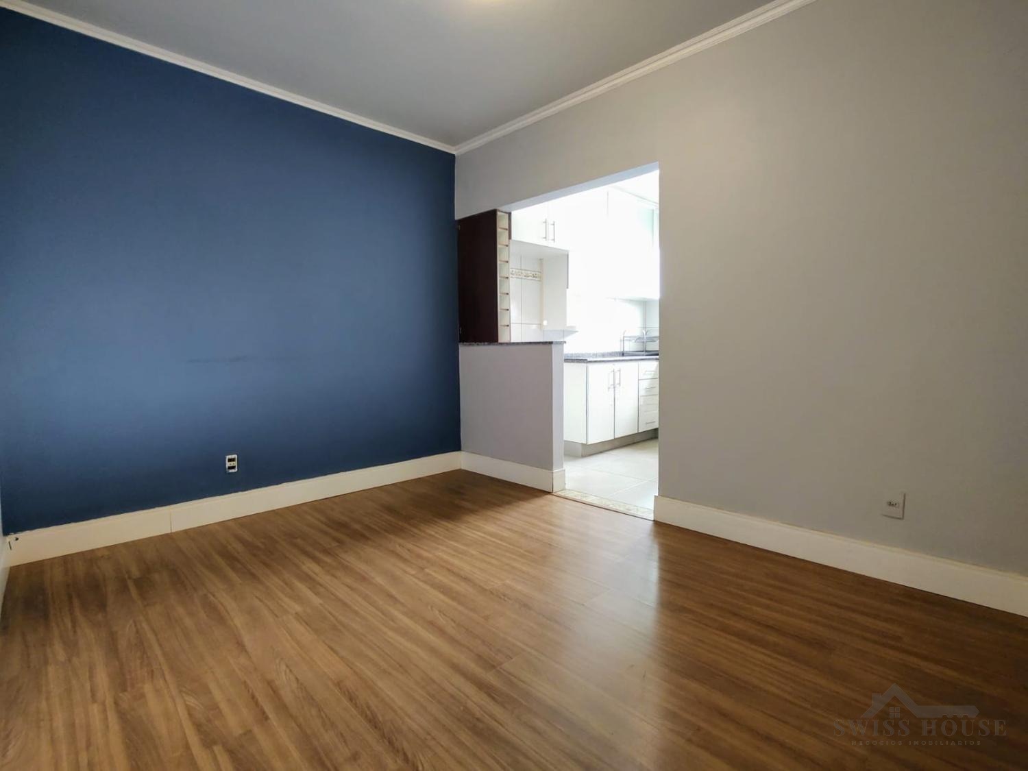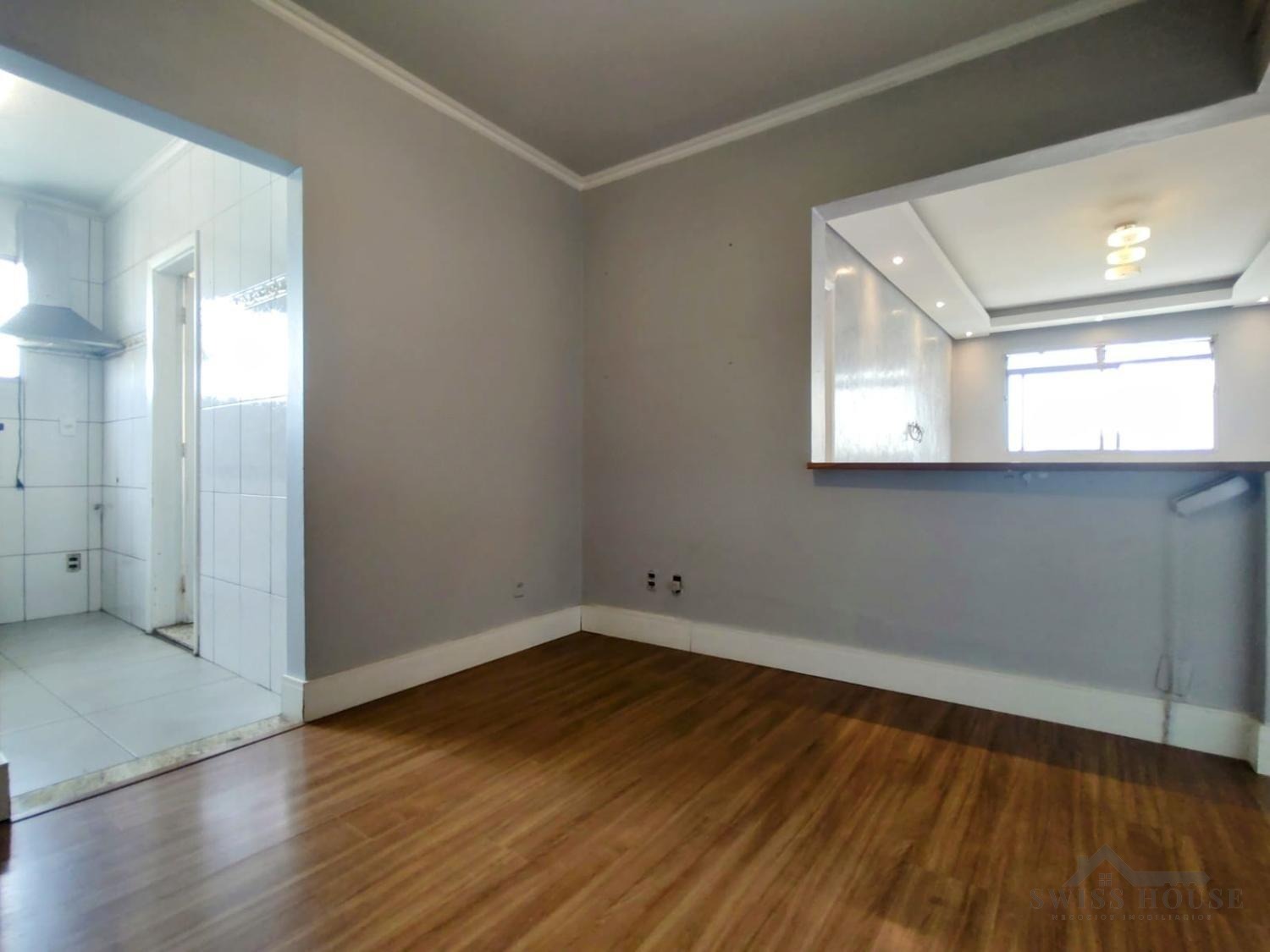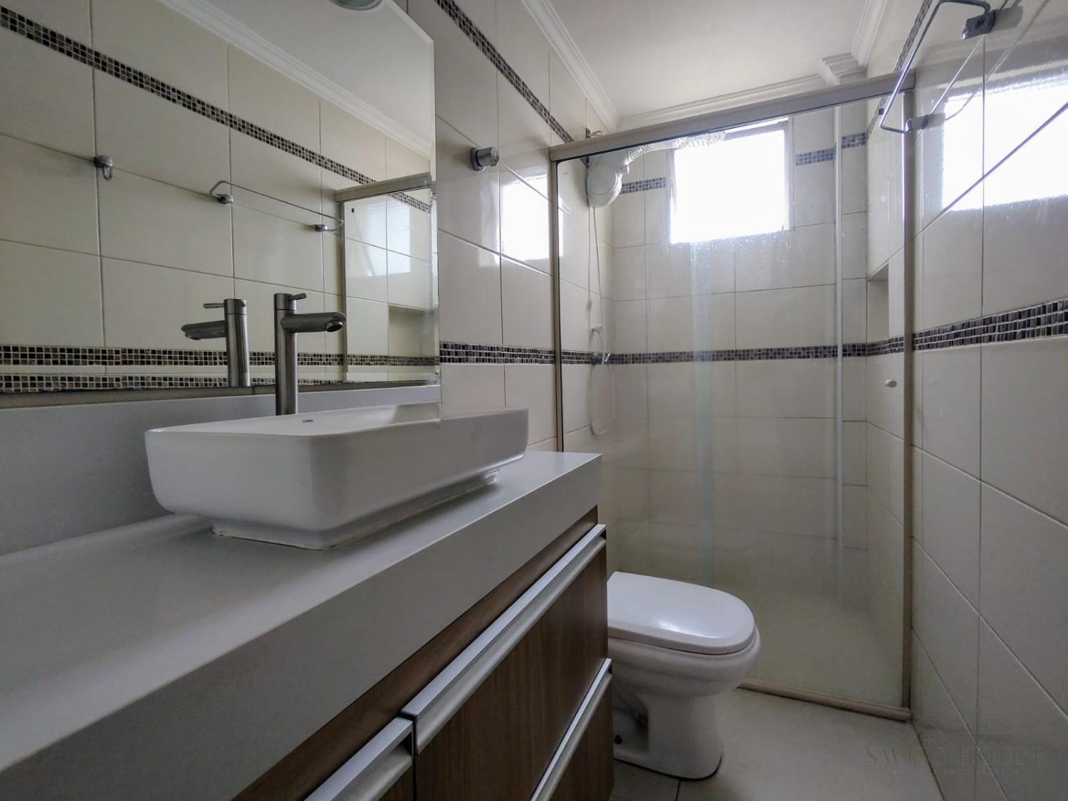 A área social é composta por sala de jantar integrada à sala de estar/TV, criando um ambiente aconchegante e funcional, com acabamento em piso laminado. O banheiro possui armário e box em blindex.