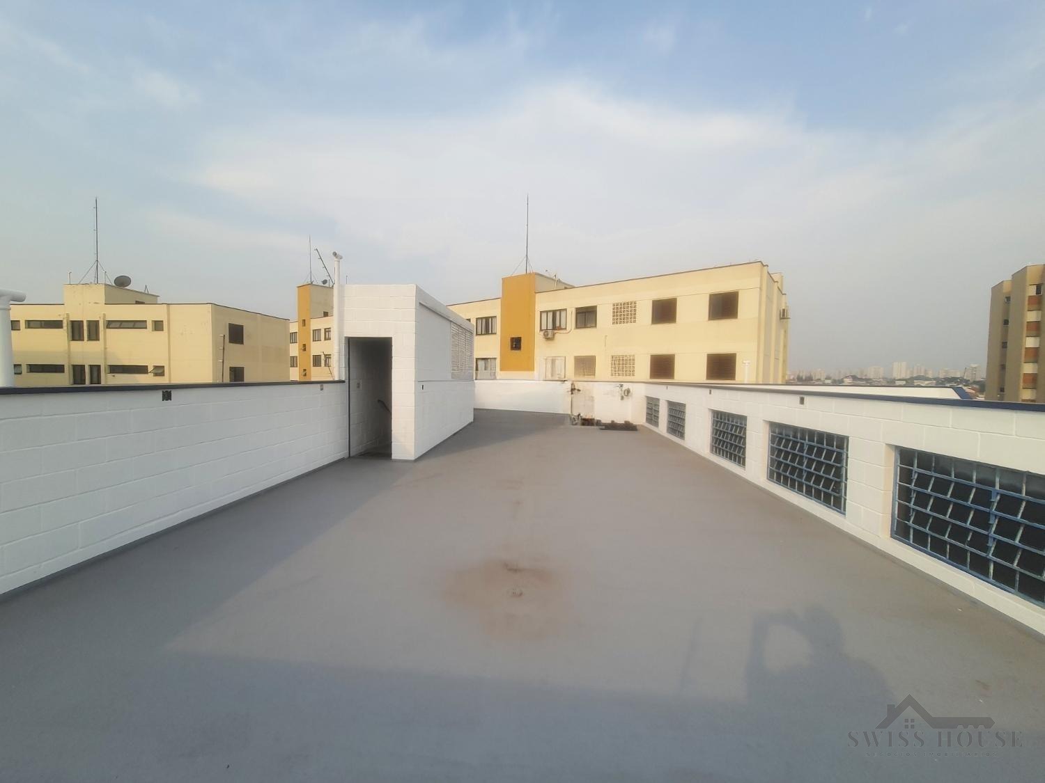 Dispõe de escritório, banheiro e mezanino em vão livre, com escritório adicional e banheiro, ideal para área administrativa. Possui ainda rooftop em vão livre, com potencial para futura ampliação.