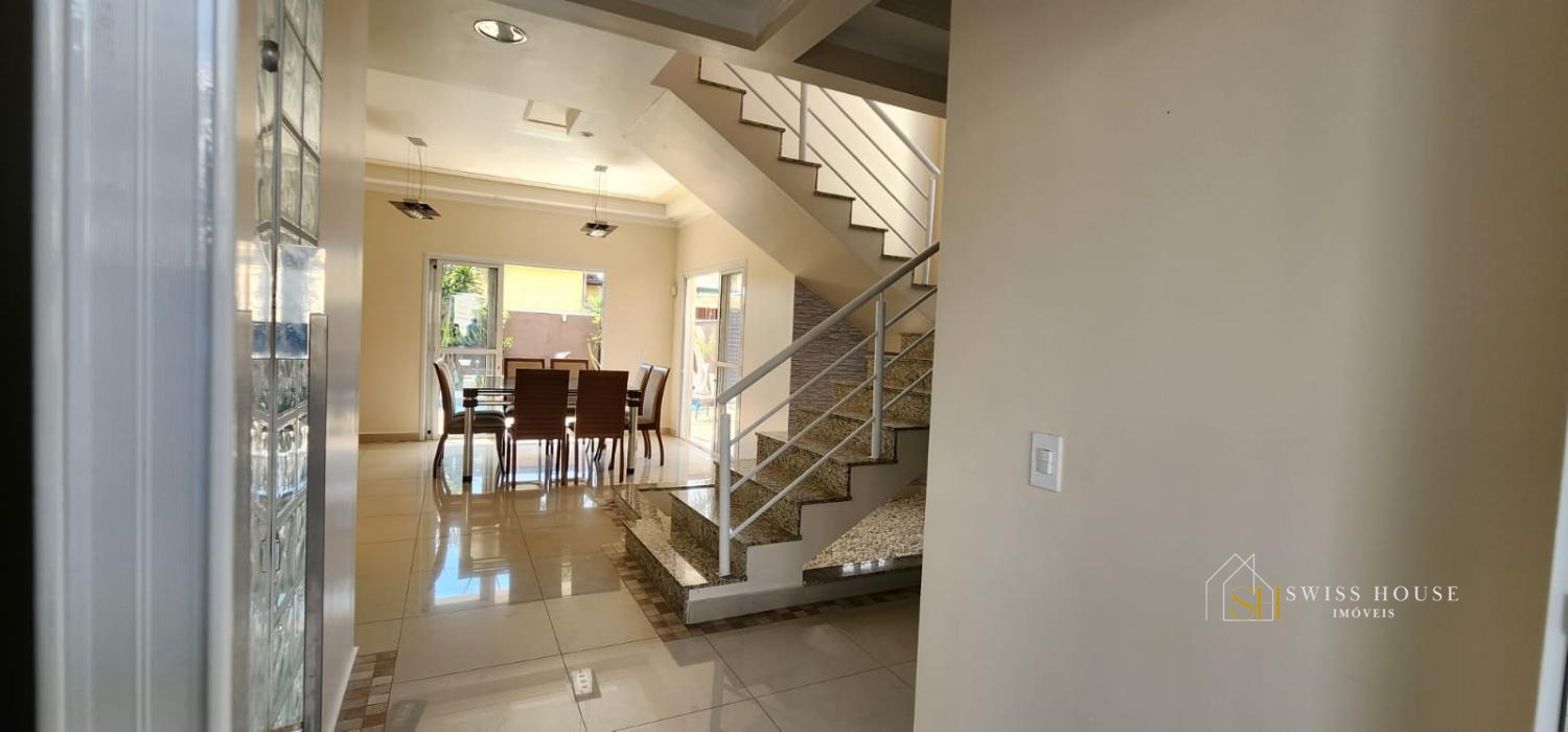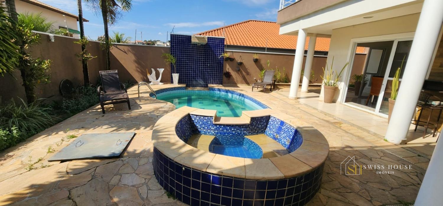 Casa arejada, contendo ampla sala de estar com lareira, lavabo, sala de jantar e cozinha toda planejada com despensa, integradas ao excelente e aconchegante espaço gourmet, com churrasqueira, piscina e jacuzzi.