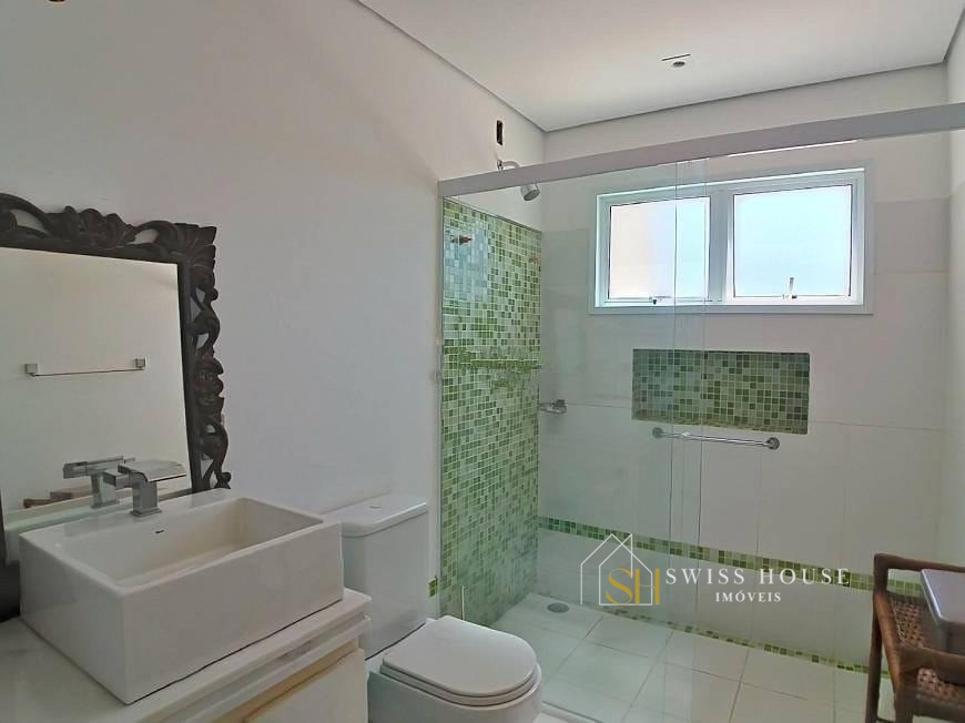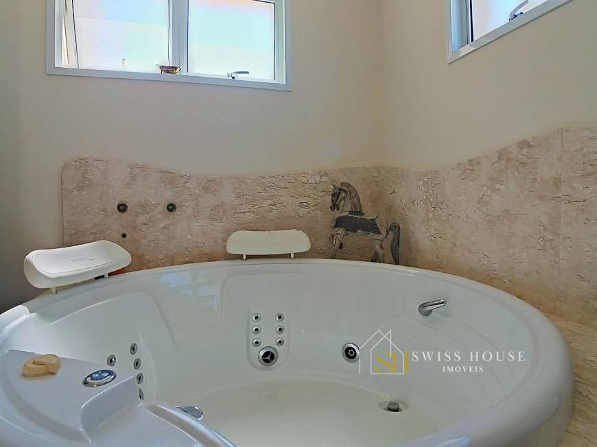Projeto imponente com detalhes da arquitetura clássica e feng shui, a casa foi construída acima do nível da rua para o aproveitamento da vista espetacular do lugar, rodeado de uma natureza exuberante. Toda parte estrutural da casa foi feita de forma impecável, foram usados tijolos maciços com tamanho maior que o convencional proporcionando longevidade à construção, estrutura projetada para elevador, aquecimento solar instalado com 18 placas, cisterna com 20mil litros interligada com a piscina e com a casa, piso superior aquecido, excelente iluminação natural, infraestrutura para ares condicionados e sensores de alarme, toda preparada para automação completa, energia trifase .