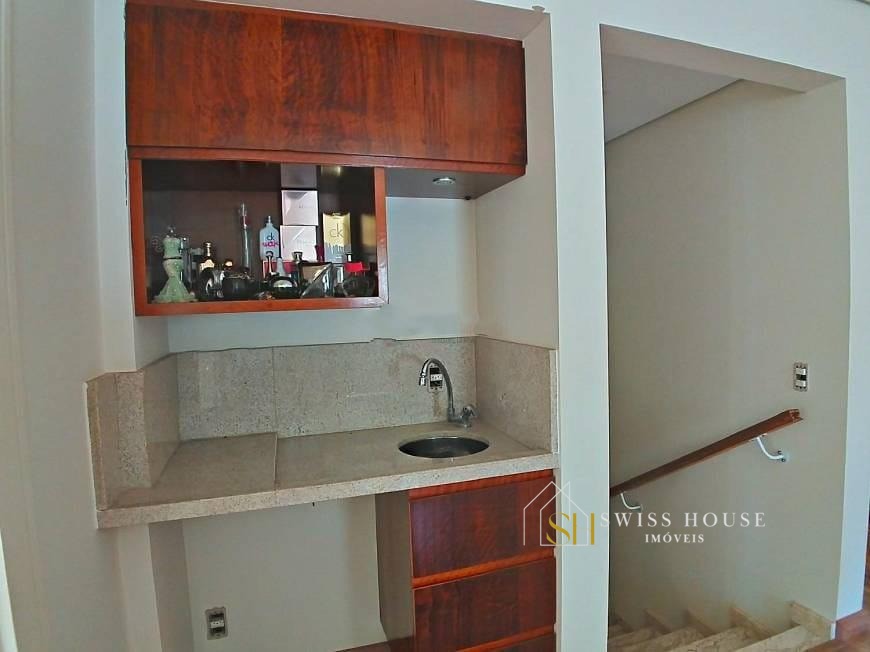 A casa possui a seguinte disposição de espaços, na entrada tem um salão atelier, faltando janelas e acabamentos, no nível da casa sala ampla de estar toda envidraçada, espaço para sala de banho e sauna, salão gourmet com preparo para churrasqueira interna, cozinha planejada com balcão, home theater, espaço para jardim de inverno, de vários pontos da residência é possível contemplar uma vista incrível e permanente, lavabo, área de serviços com passagem prática de roupa suja do piso superior, 2 dependências funcionários com banheiro comum, espaço para adega, total de 4 suítes sendo 1 no térreo, master com closet e hidromassagem, varandas, sala íntima, copa de apoio, 4 vagas cobertas, piscina com detalhes de arcos romanos dão um charme especial ao lazer, deck a terminar.