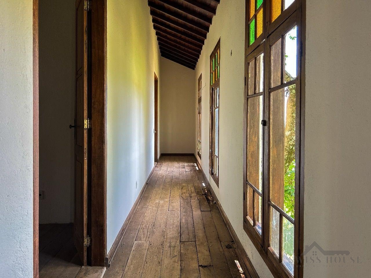 O imóvel conta com 2 suítes amplas no primeiro pavimento, destacando-se pelas portas e janelas de estilo antigo e pela vista privilegiada da suíte principal. No piso inferior, os ambientes são integrados e funcionais, incluindo sala ampla adaptável para TV, sala de estar, lavabo, cozinha, copa, lavanderia e espaço para adega.
