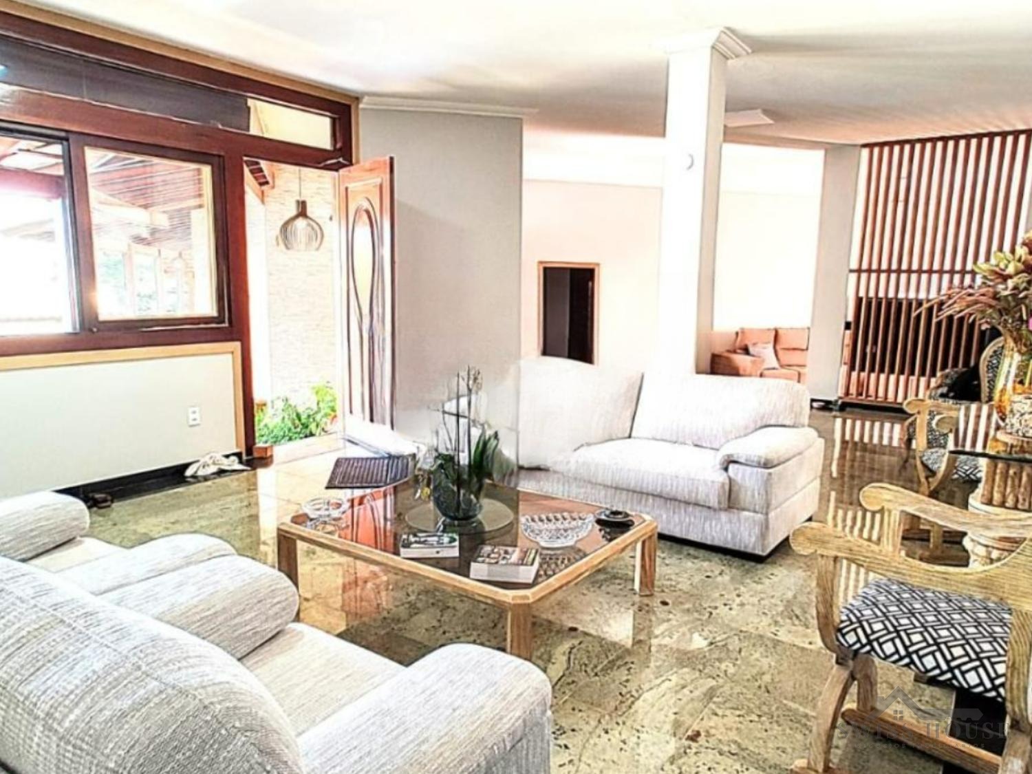 Esta residência se destaca pela amplitude e pela excelente distribuição dos ambientes. São cinco dormitórios, sendo três suítes equipadas com armários planejados, que oferecem conforto e praticidade. O living para três ambientes proporciona elegância e integração, enquanto a cozinha, espaçosa e planejada, garante funcionalidade no dia a dia. O imóvel conta ainda com lavabo e escritório, atendendo às necessidades de trabalho e estudo em casa.