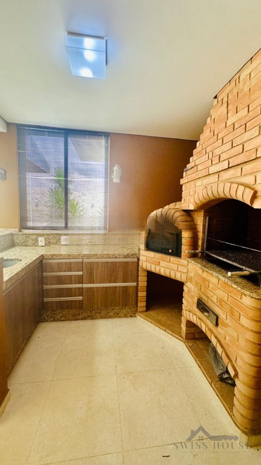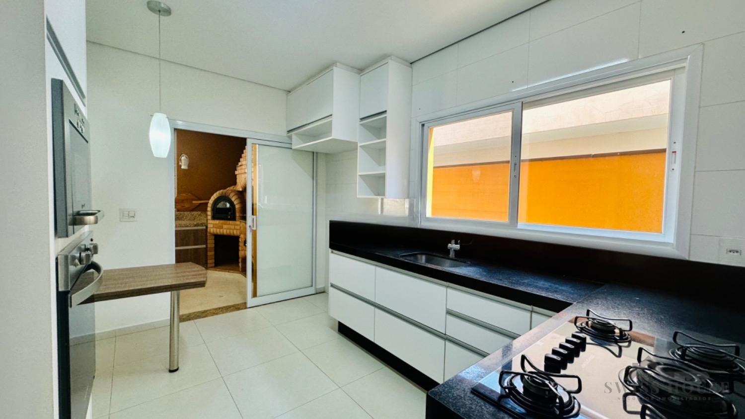 A cozinha planejada alia modernidade e eficiência, enquanto o espaço gourmet, totalmente fechado em vidro, com churrasqueira e forno, é ideal para receber amigos e familiares em grande estilo.