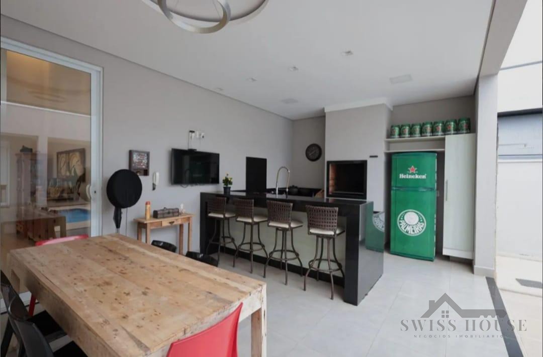 Com 3 suítes, sala para 2 ambientes, cozinha planejada, churrasqueira, banheiros com armário e box, piscina, amplo quintal, lavanderia e 4 vagas de garagens.