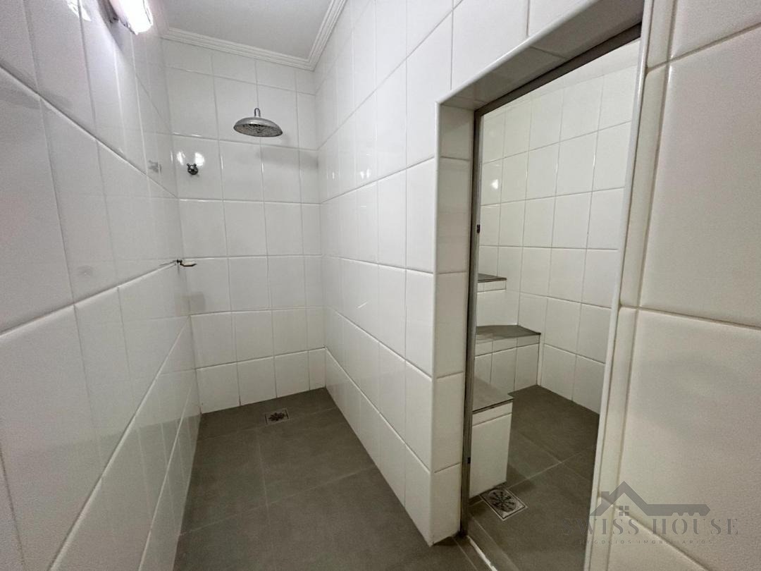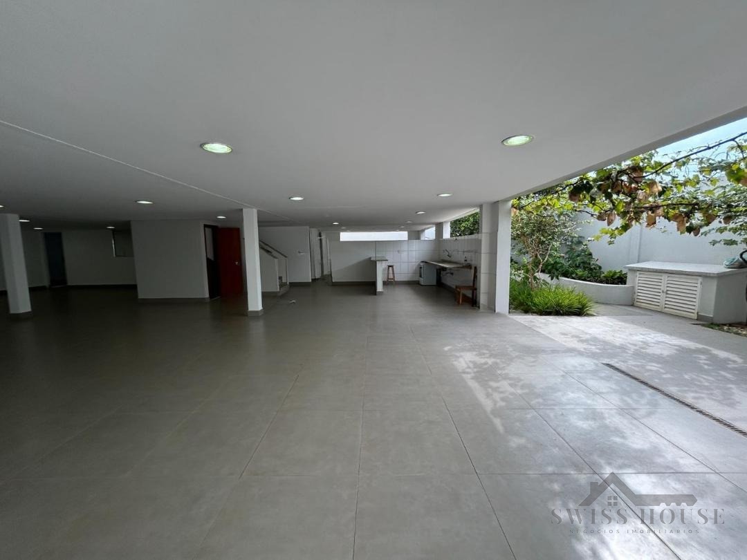 Já no pavimento inferior, o destaque é o amplo salão com espaço gourmet, ideal para lazer e confraternizações. Este nível conta ainda com dormitório ou escritório, quarto de despejo, banheiro, sauna a vapor com ducha, espaço para academia, área de serviço e acesso ao quintal com jardim e árvores frutíferas, criando um ambiente agradável e integrado à natureza.