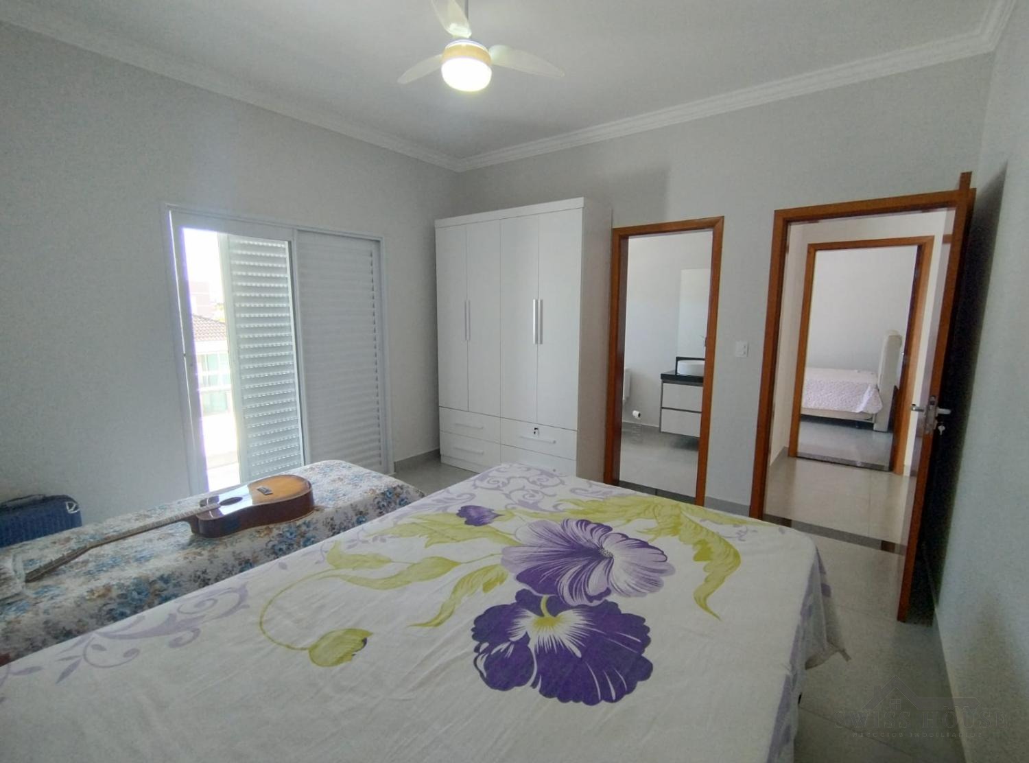 No piso superior, o imóvel conta com 3 suítes, todas muito bem planejadas, sendo 2 com sacadas. A suíte master se destaca pelo amplo espaço, closet e um banheiro exclusivo, com layout inteligente e funcional, incluindo área separada para maior privacidade.