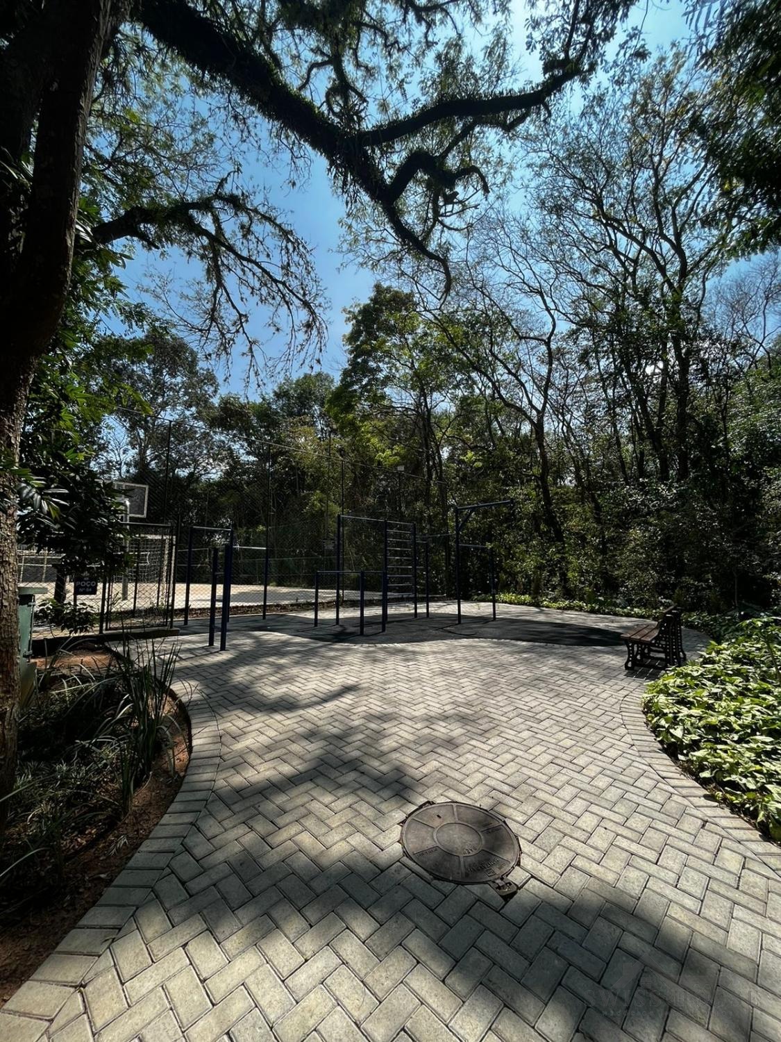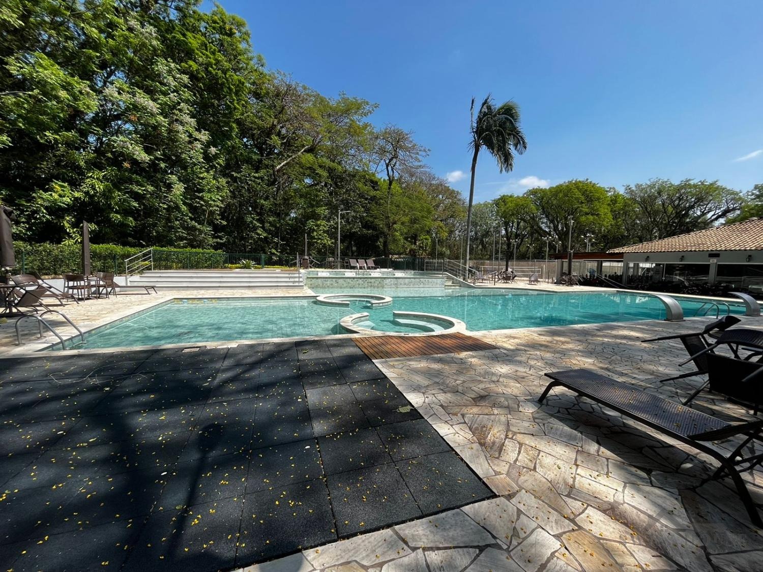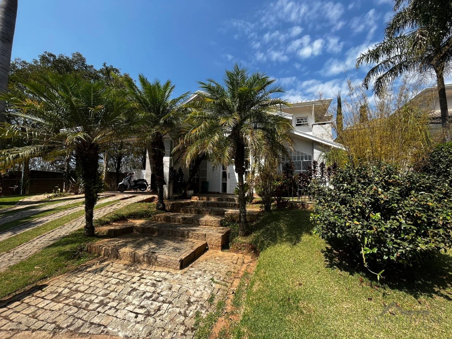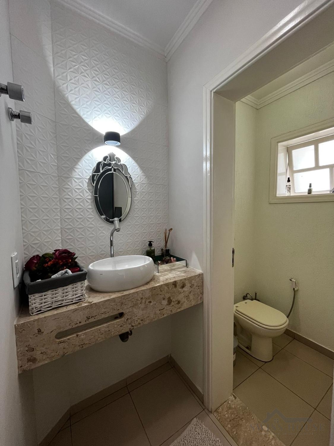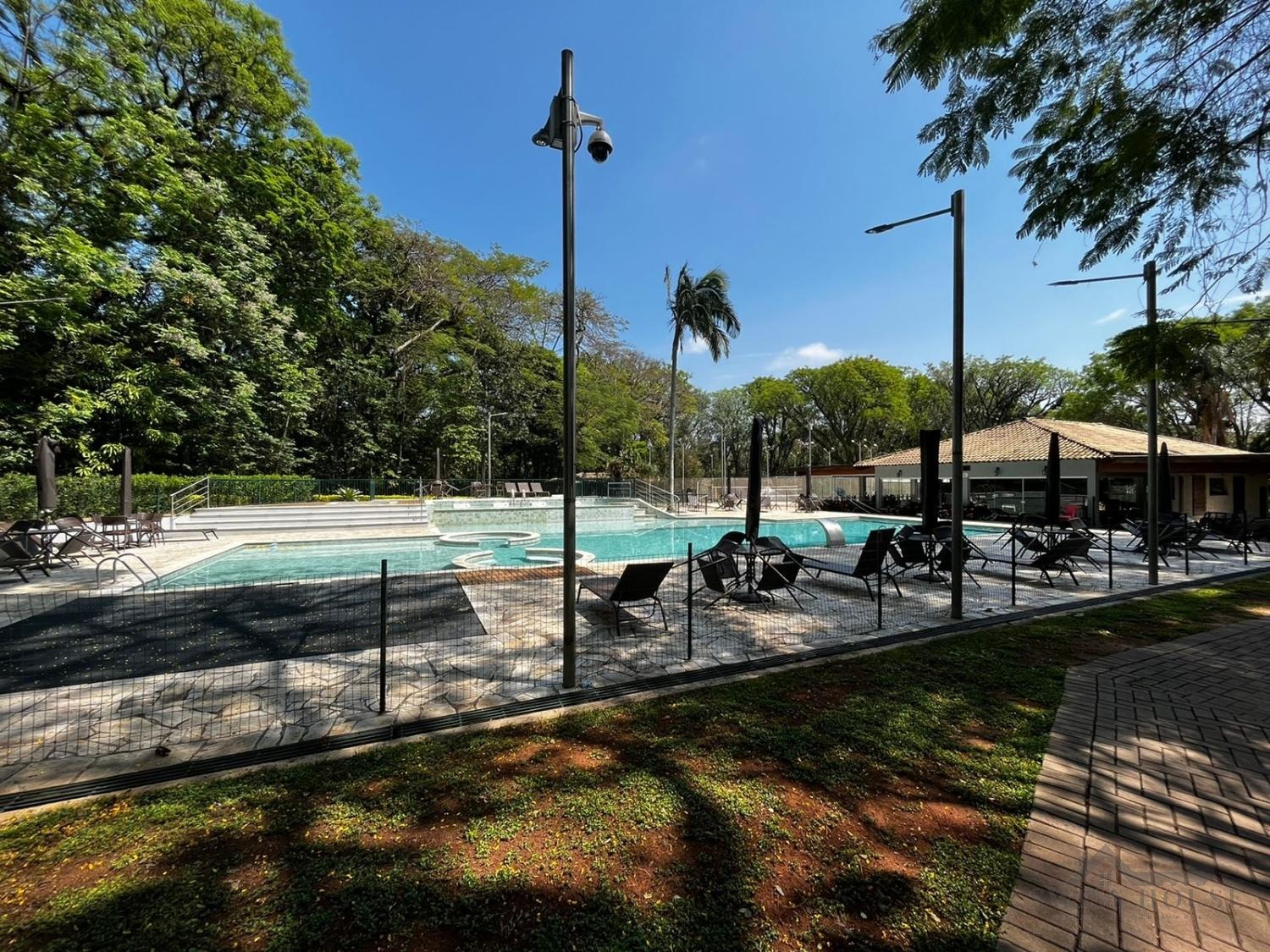 No piso térreo, conta com sala de estar, sala com lareira, sala de jantar, lavabo, cozinha, 1 suíte atualmente revertida em escritório, área de serviço, área gourmet, piscina com banheiro de apoio, dependência completa de empregada, corredor social para a área de serviços e acesso lateral independente para a área gourmet. Dispõe ainda de garagem coberta para 2 carros e 2 motos, garagem descoberta para mais 4 veículos e oficina/quarto de despejo. Todo o pavimento inferior, inclusive áreas externas, possui piso em porcelanato.