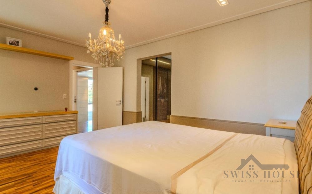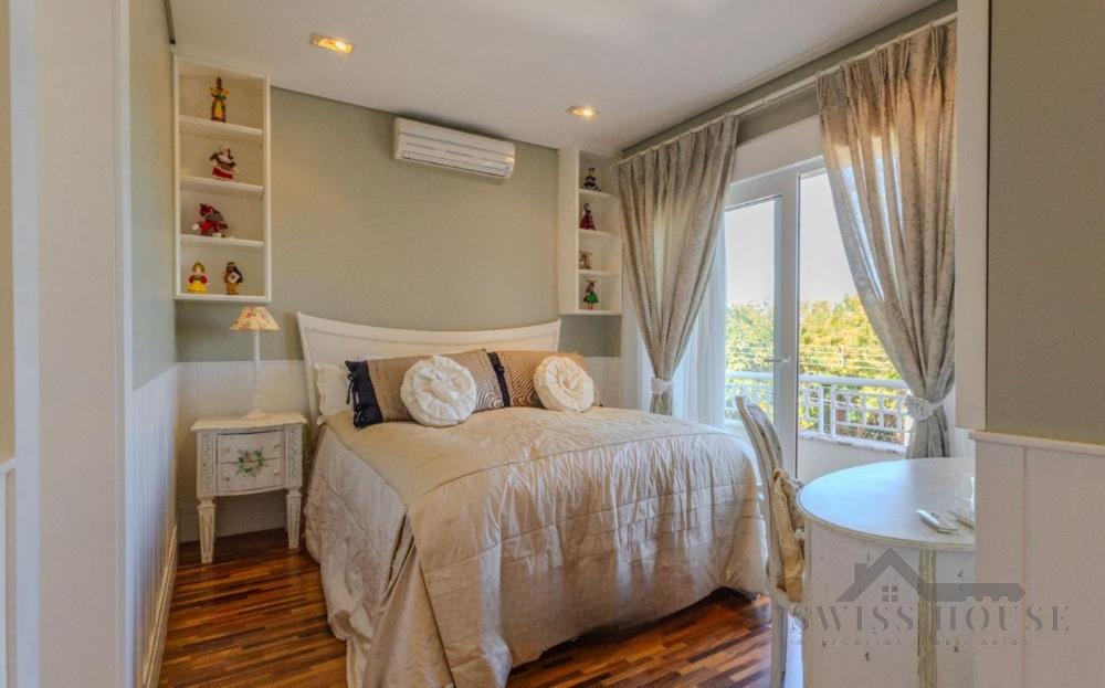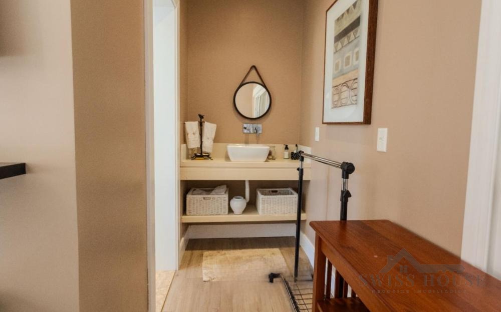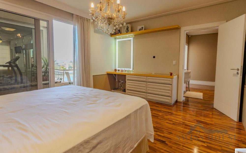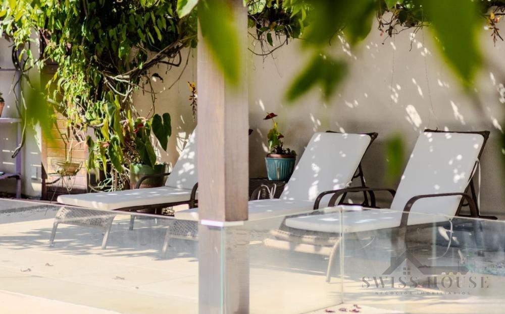 No piso superior, o imóvel oferece 4 suítes planejadas, sendo 1 suíte master com academia privativa e acesso externo para um belíssimo jardim com horta e plantas ornamentais, garantindo total privacidade com vista para área de preservação.