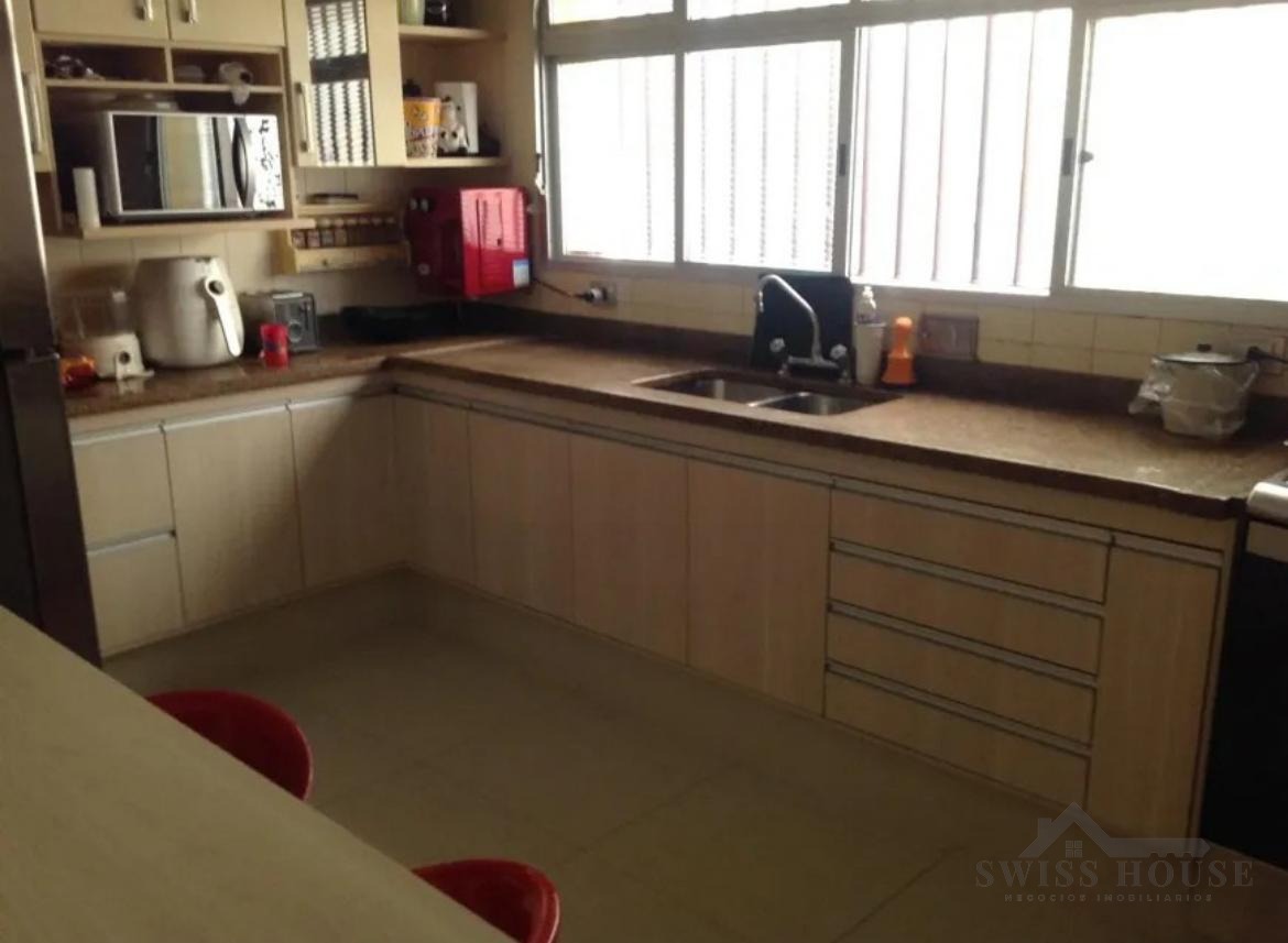 A cozinha é planejada, com ótimo aproveitamento de espaço, integrada a uma lavanderia funcional. O imóvel conta também com quarto e banheiro de empregada, agregando versatilidade.