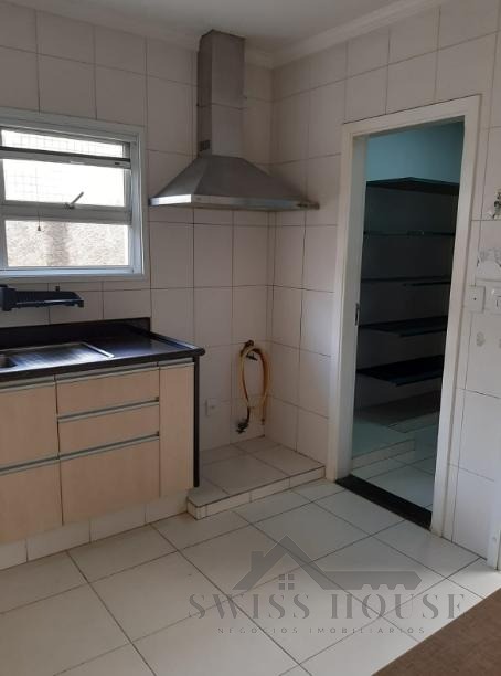 A cozinha é totalmente equipada, com ótimo aproveitamento de espaço, além de dependências de empregada que agregam funcionalidade ao imóvel.