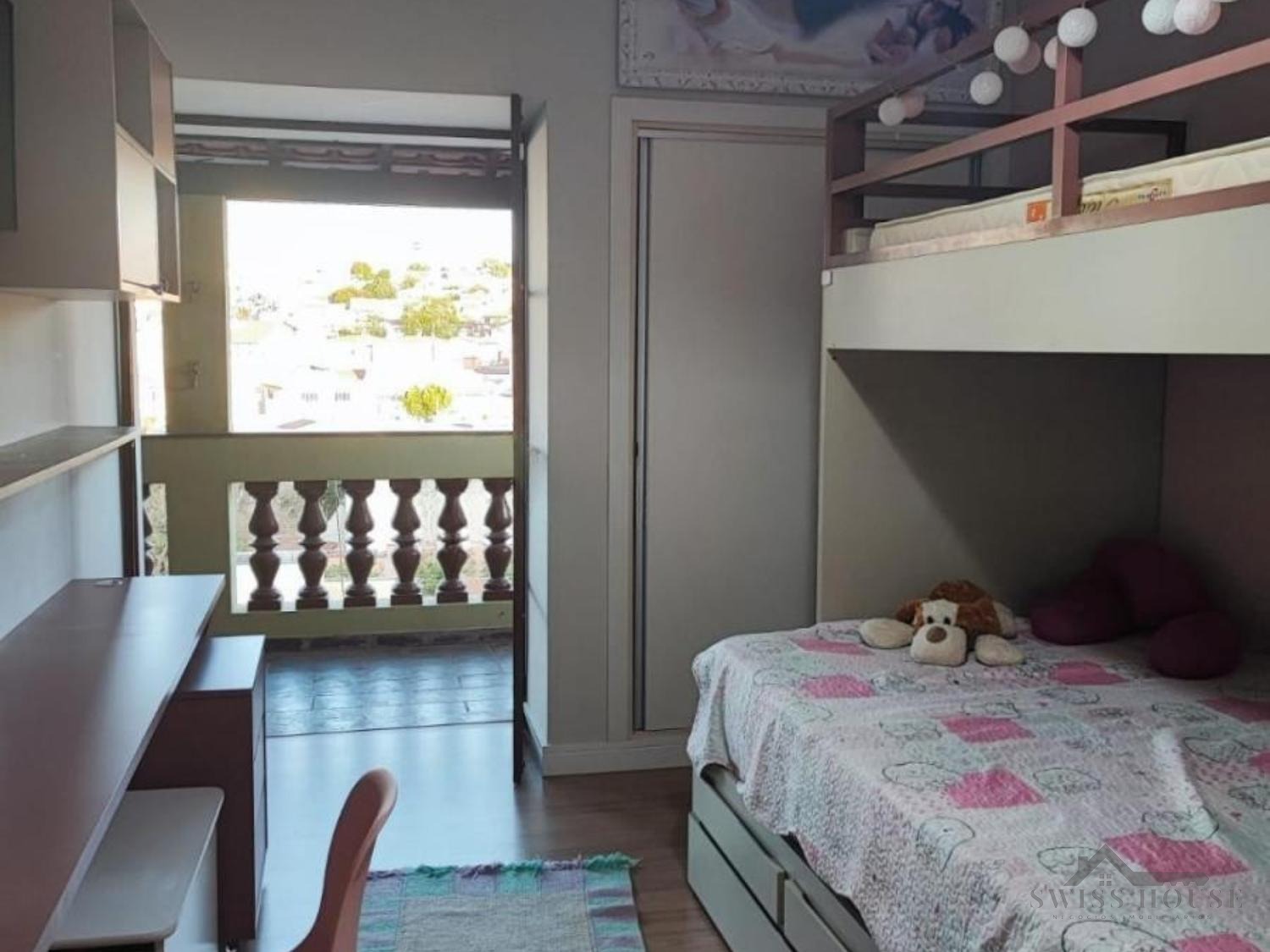 No piso superior, estão os 3 dormitórios com sacada, sendo 1 suíte, além de sala íntima e banheiro social, garantindo privacidade e conforto para a família.