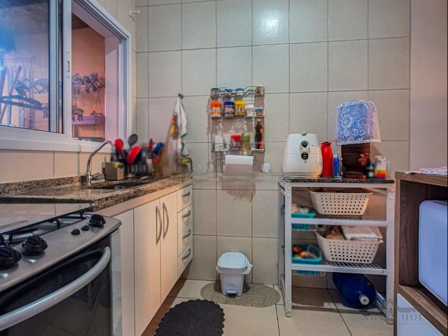 Dispõe de lavabo e banheiro social, garantindo praticidade para a rotina. A cozinha é planejada, com bom aproveitamento de espaço, integrada aos demais ambientes.